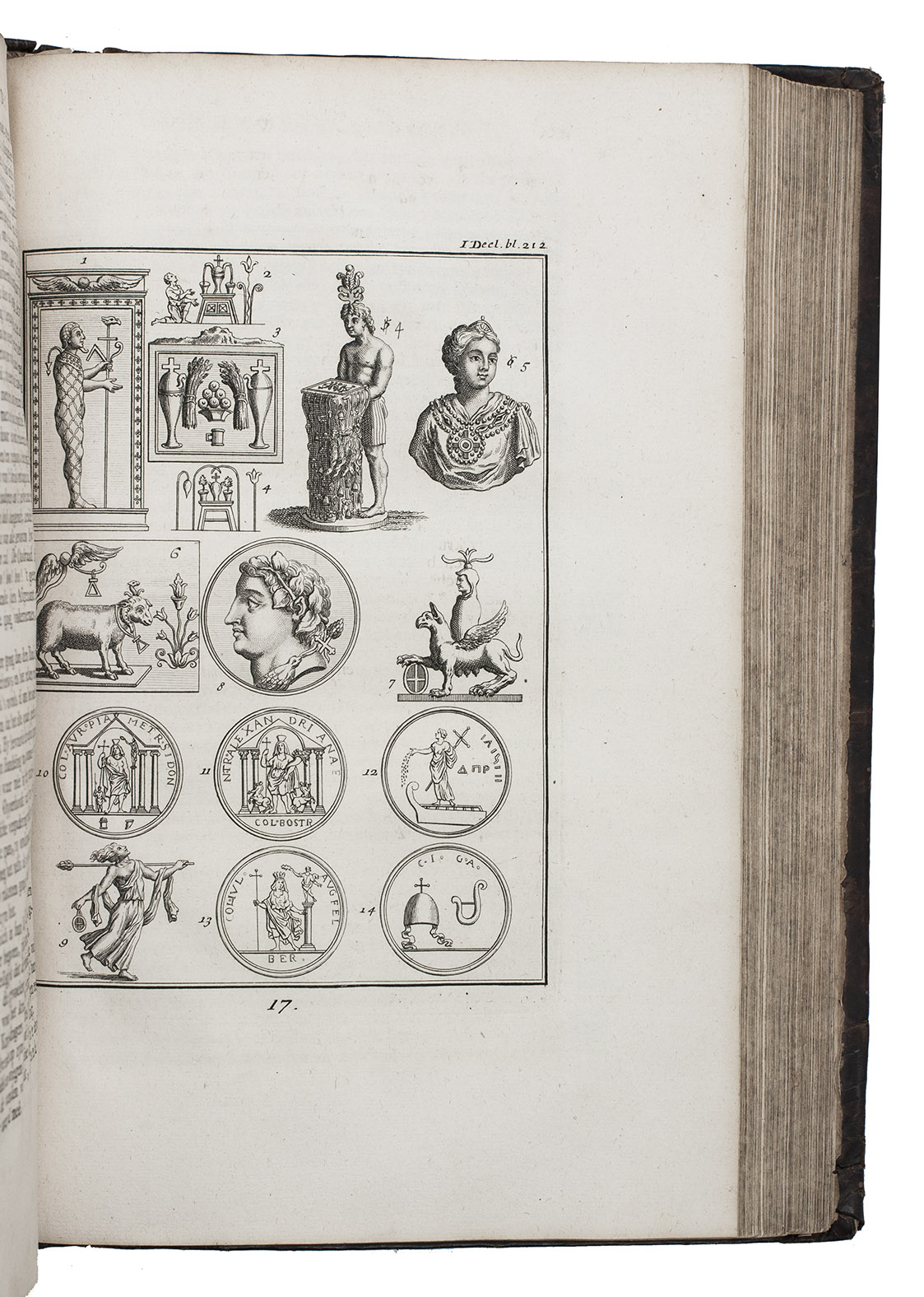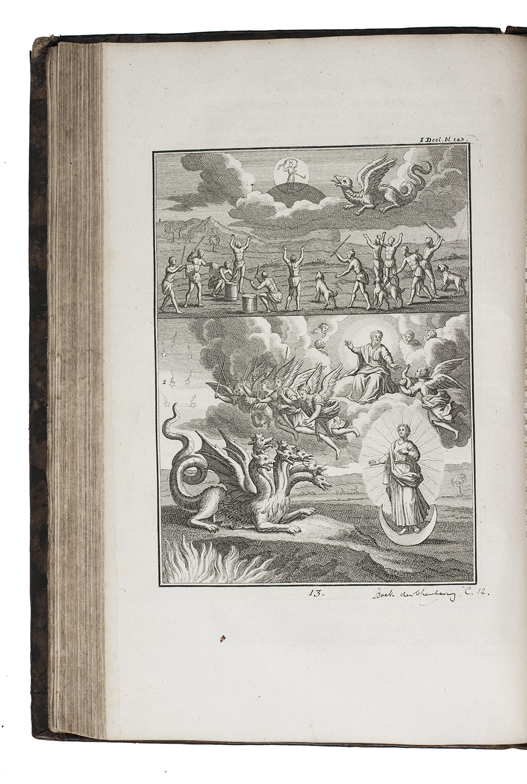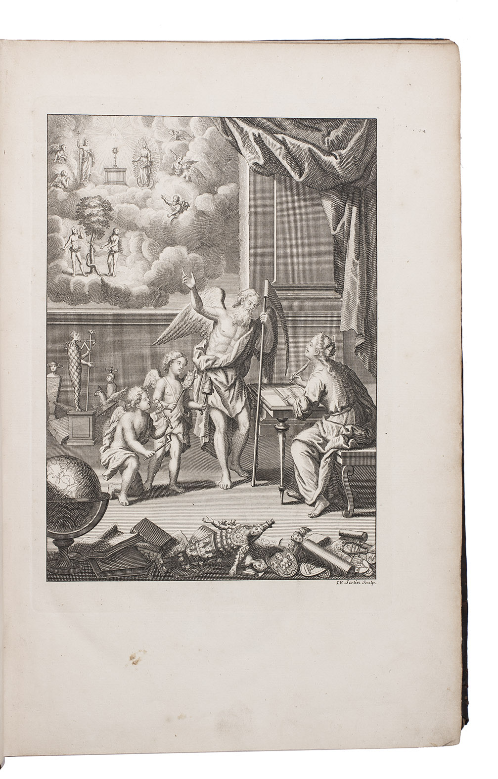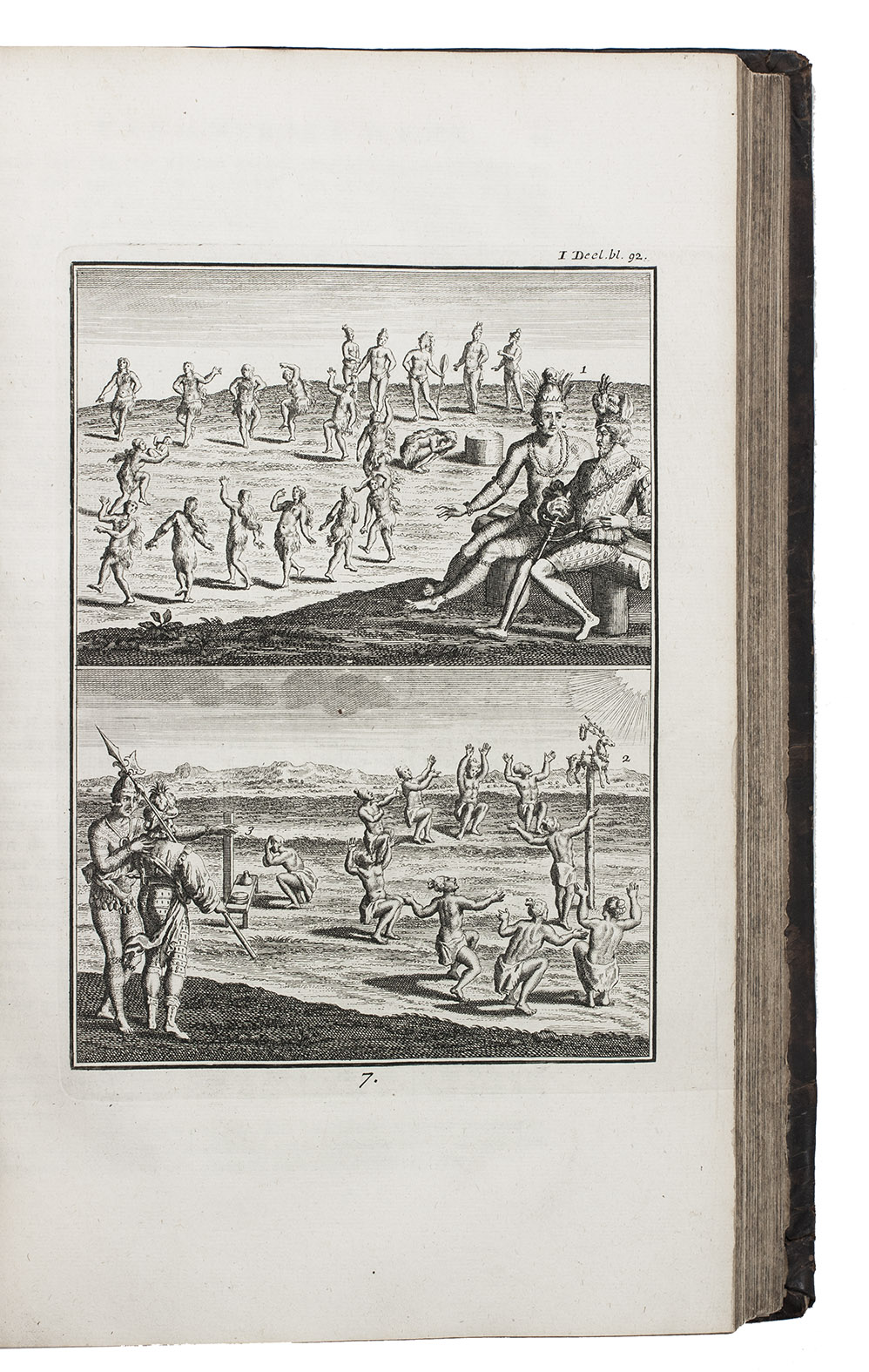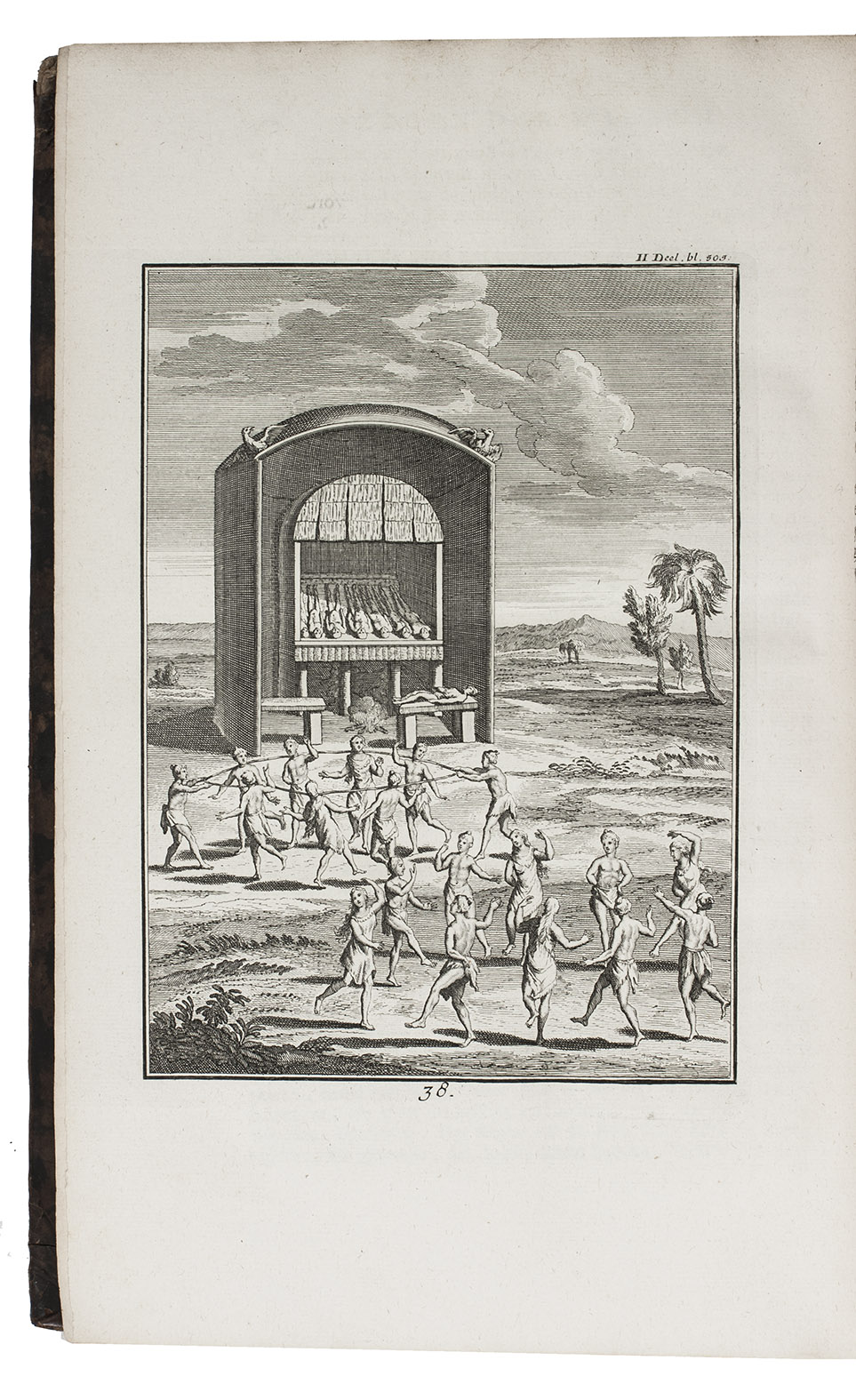 The Hague, Gerard vander Poel, 1731. 2 volumes bound as 1. Folio. With engraved frontispiece, engraved map of North and South America and 41 engraved plates. Contemporary calf, richly gold-tooled spine. [6], 36, [18], 300; [4], 301-555 [= 560] pp.