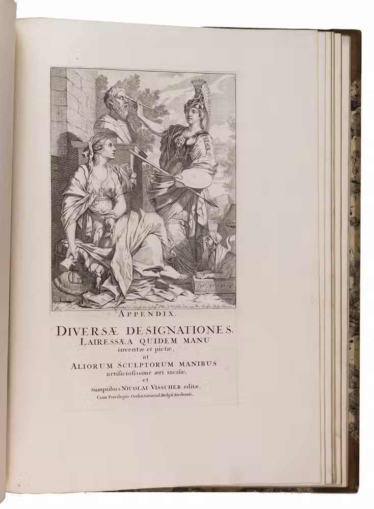 Including: [LAIRESSE, Gerard de, and Nicolaas VISSCHER II]. Appendix. Diversae de signationes, Lairessaea quidem manu inventae et pictae, at aliorum sculptorum manibus artificiosissime aeri incisae et sumptibus Nicolai Visscher editae.