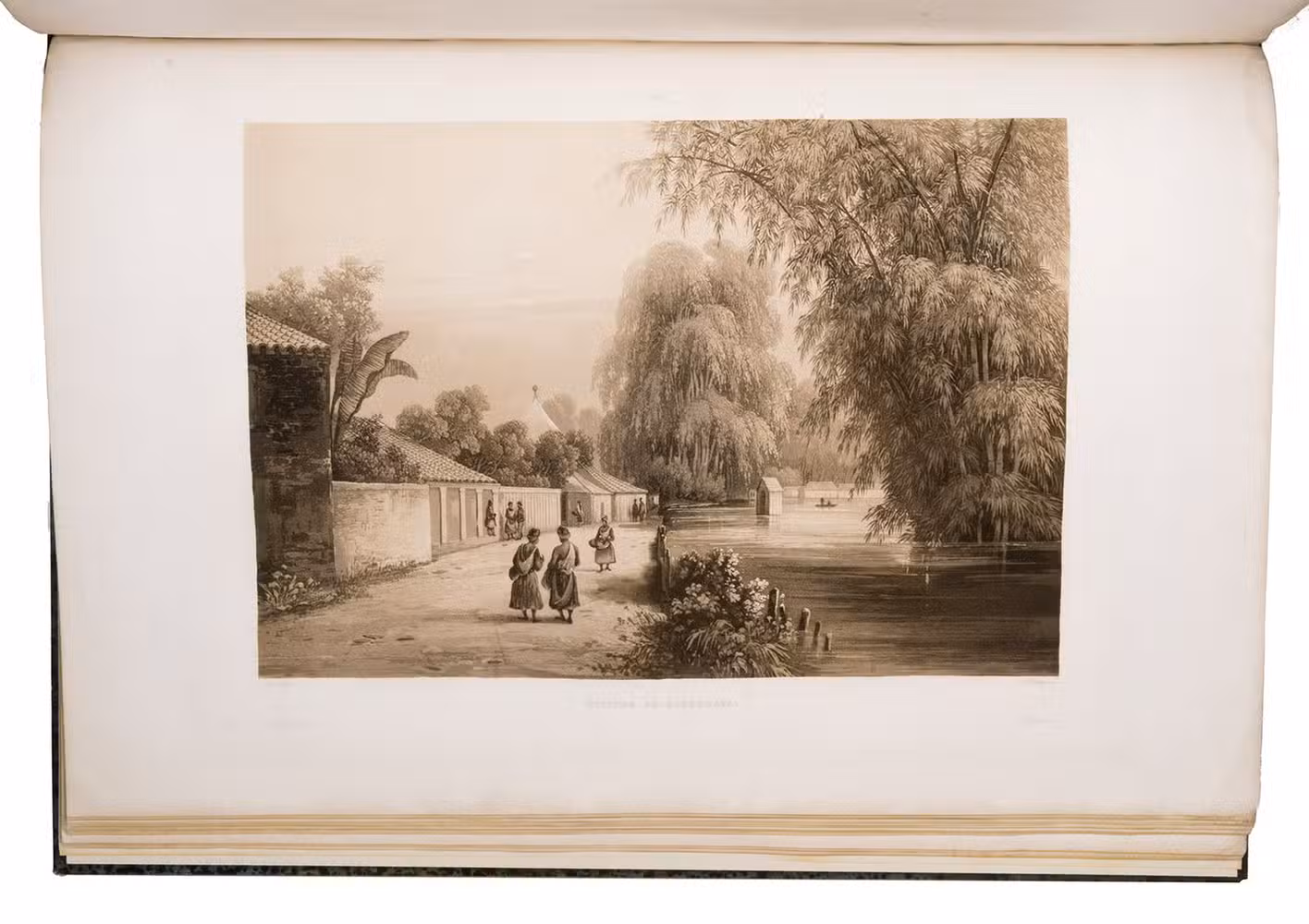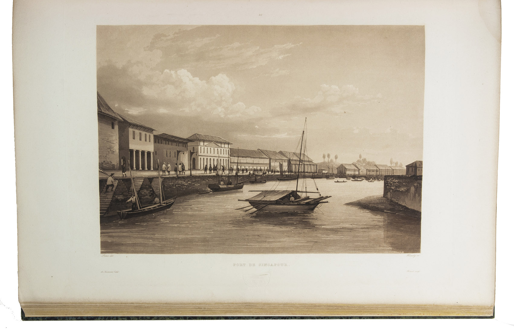First edition of an important account of the circumnavigation of the world under command of Cyrille Pierre Théodore Laplace (1793-1875). In May 1829 Laplace was appointed commander of the ship La Favorite, to make a journey around the world for scientific and commercial purposes. He departed from Toulon, followed the coast lines of Africa past the Cape Good Hope and visited Pondichéry, Madras and Surabaya. He explored the coasts of Cochinchina and Tonkin and set sail to the Philippines and after that Australia, Tasmania and New Zealand. He crossed the Pacific on his return to Toulon, past Valparaiso, Cape Horn and the coasts of Brazil. On 20 April 1832 he touched ground in Toulon again. The journey was a considerable success and added many important details to the scientific knowledge of the areas explored.