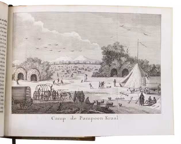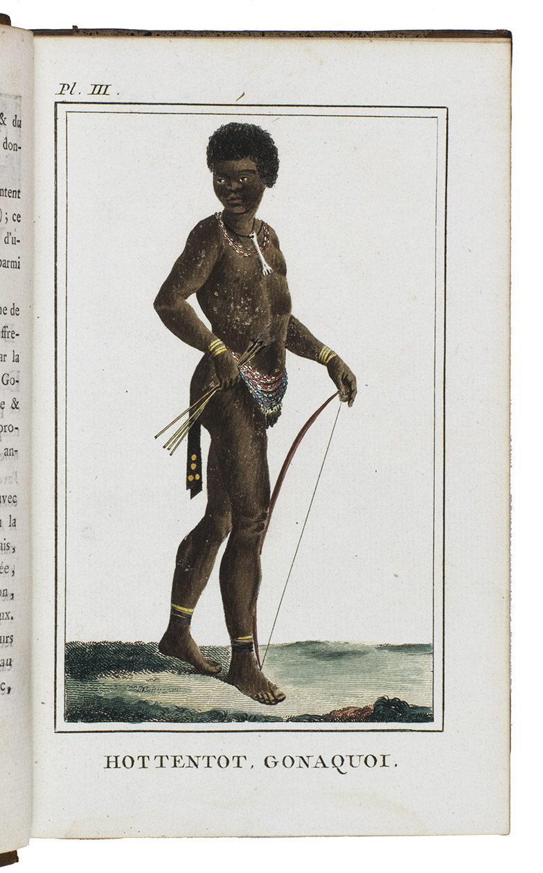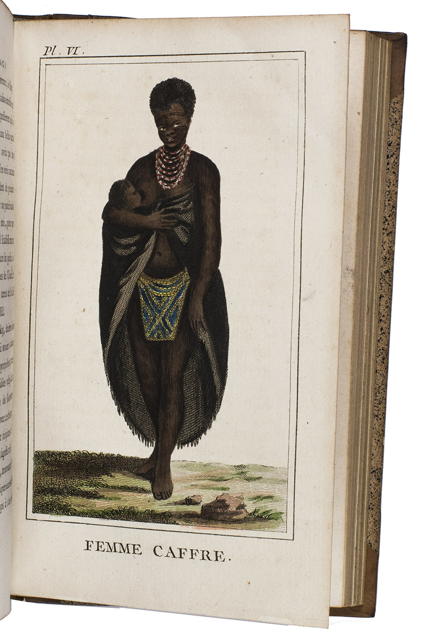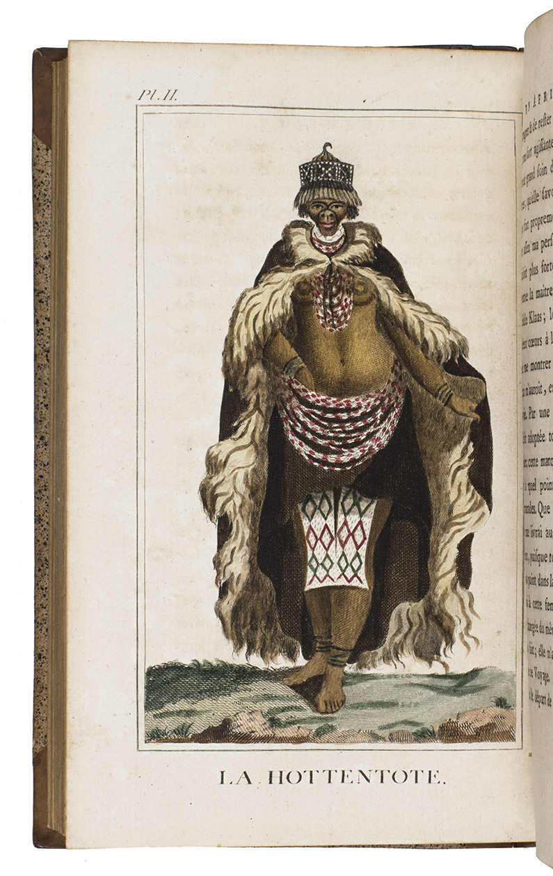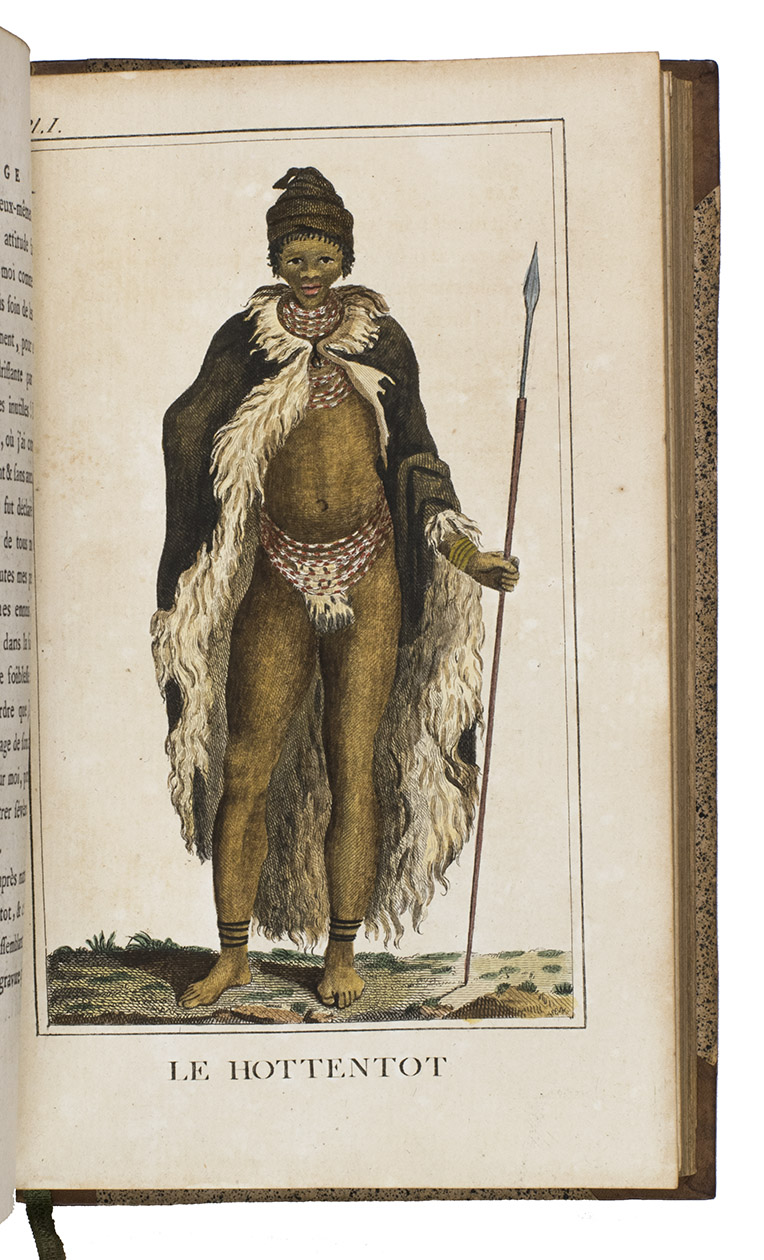In very good condition. The bindings are also very good, with only minor signs of wear. A landmark voyage to the South African interior, with 7 iconic costume portraits of indigenous Africans, coloured by hand. Gay, Bibl. de l'Afrique et de l'Arabie 3118; cf. Mendelssohn I, p. 889 (4to ed. of 1790); Rookmaker, pp. 177-271.