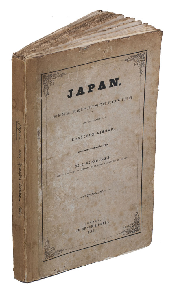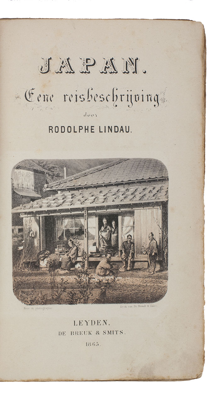Rare first and only Dutch edition of Lindau's description of Japan. Lindau discusses Nagasaki (including Dejima), Manchuria, Edo and Yokohama, with extensive remarks on Japanese politics and culture, including a detailed account of a sumo wrestling match. Writing during the so-called "Bakumatsu" (the late Tokugawa Shogunate), the author devotes three chapters to the Japanese political associations and networks after Commodore Matthew Perry signed the 1854 Treaty of Kanagawa, which would eventually lead to the Meiji Restoration.