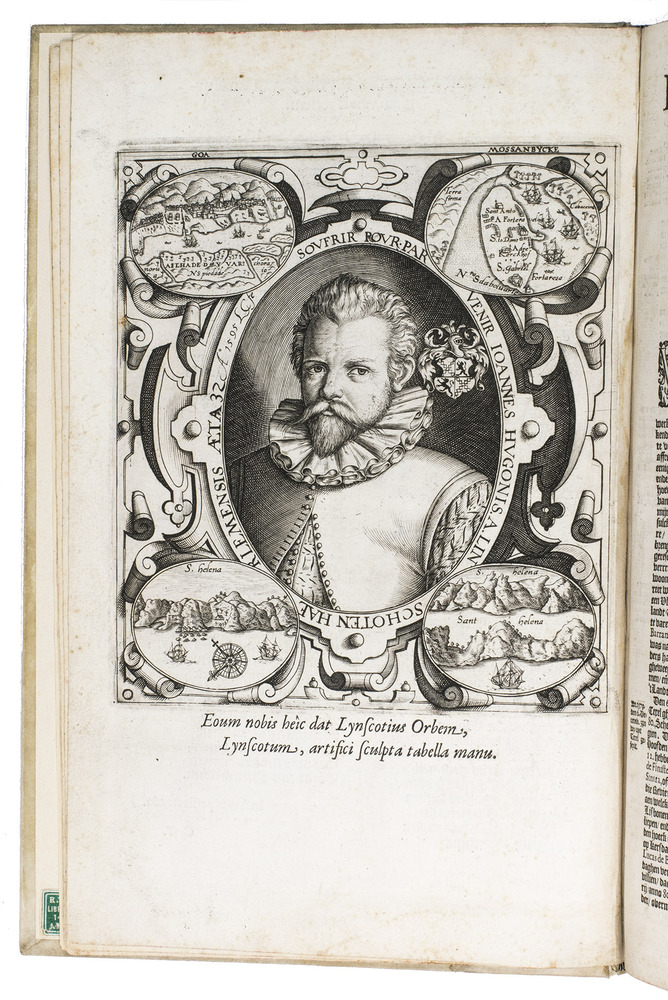 Jan Huygen van Linschoten (1563-1611), merchant, adventurer and explorer, left his birthplace Enkhuizen in December 1576 to join his brothers in Seville. He spent six years on the Iberian peninsula, eventually taking employment with a merchant in Lisbon. There he came into the service of the newly appointed Archbishop of Goa, the capital of Portuguese India, Vincente de Fonesca. He set sail with the Archbishop for Goa in April 1583. Linschoten was in Goa for more than five years as secretary to De Fonesca, in which capacity he not only had easily access to many Portuguese portolans as well as other sensitive commercial information, much of which he copied, but he also travelled throughout the Malabar and Coromandel coastal regions. He left Goa for Lisbon in January 1589. His voyage, however, was not smooth: his ship was pursued by the English fleet and lost its cargo in a storm. After the loss of the cargo Linschoten was persuaded to stay and help to try to recover it and spent two years on Terceira, in the Azores, working and exploring. Linschoten eventually arrived in Lisbon early in 1592 and after having settled his affairs there, he set sail for the Netherlands.