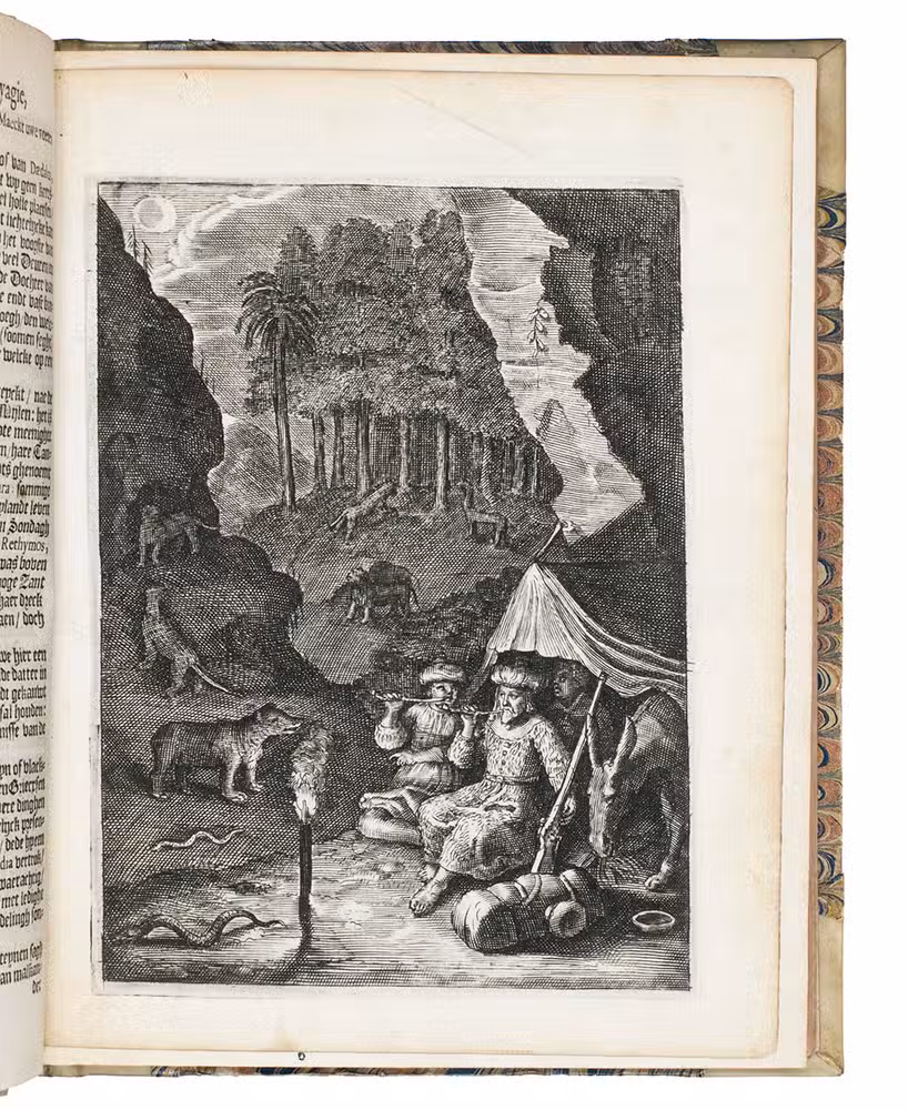 With the bookplate of the Dutch historian J.F.L. de Balbian Verster. The engraved plate faces p. 50 of the part 1, but probably should face p. 21 of part 2. With a tear repaired in Q3 and very slightly browned, but book and binding overall in good condition. Howgego, to 1800, L134; KVK & WorldCat (8 copies); Tiele, Bibl. 695 note; cf. Blackmer 1021.