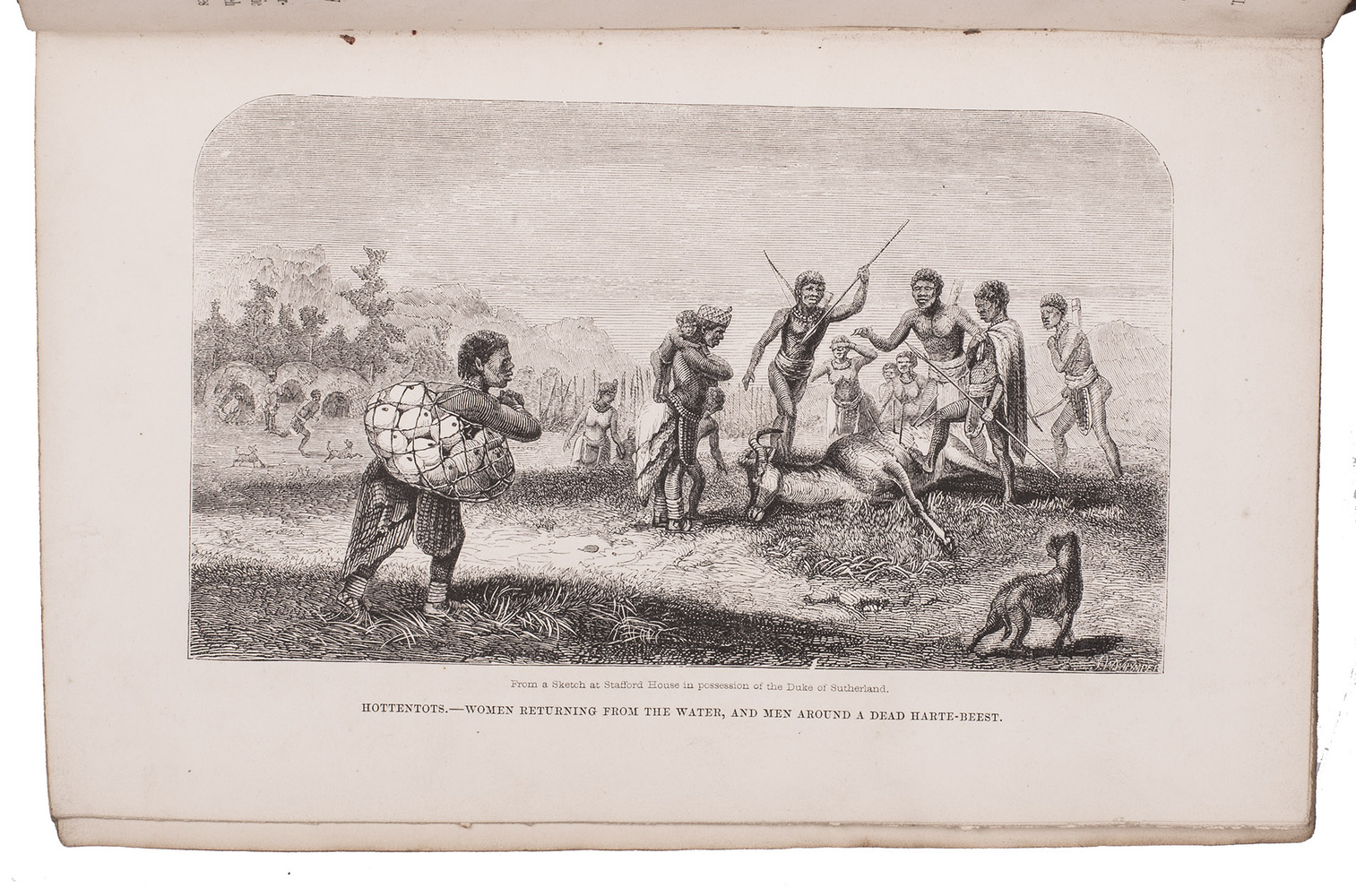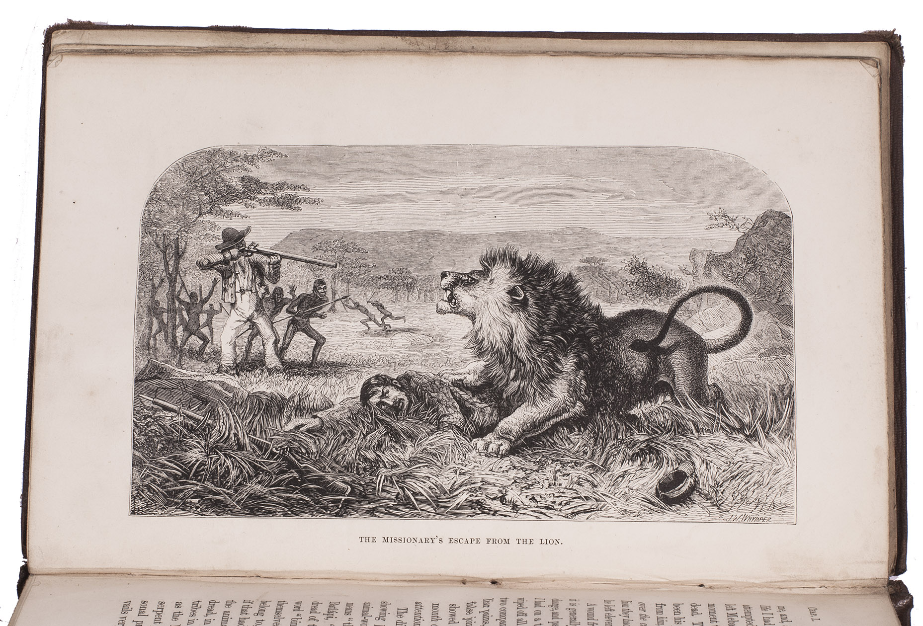 Occasionally some small spots, stains or minor foxing, internally otherwise in very good condition. Binding worn, damaged at head and foot of spine and back board partly detached. Abbey, Travel 347; Bradlow, Africana books and pictures, p. 123; Gay 3034; Henderson, Publishing Livingstones Missionary travels; Howgego, 1850-1940, L 33; Mendelssohn, South African Bibliography, pp. 908-910; PMM 341.
