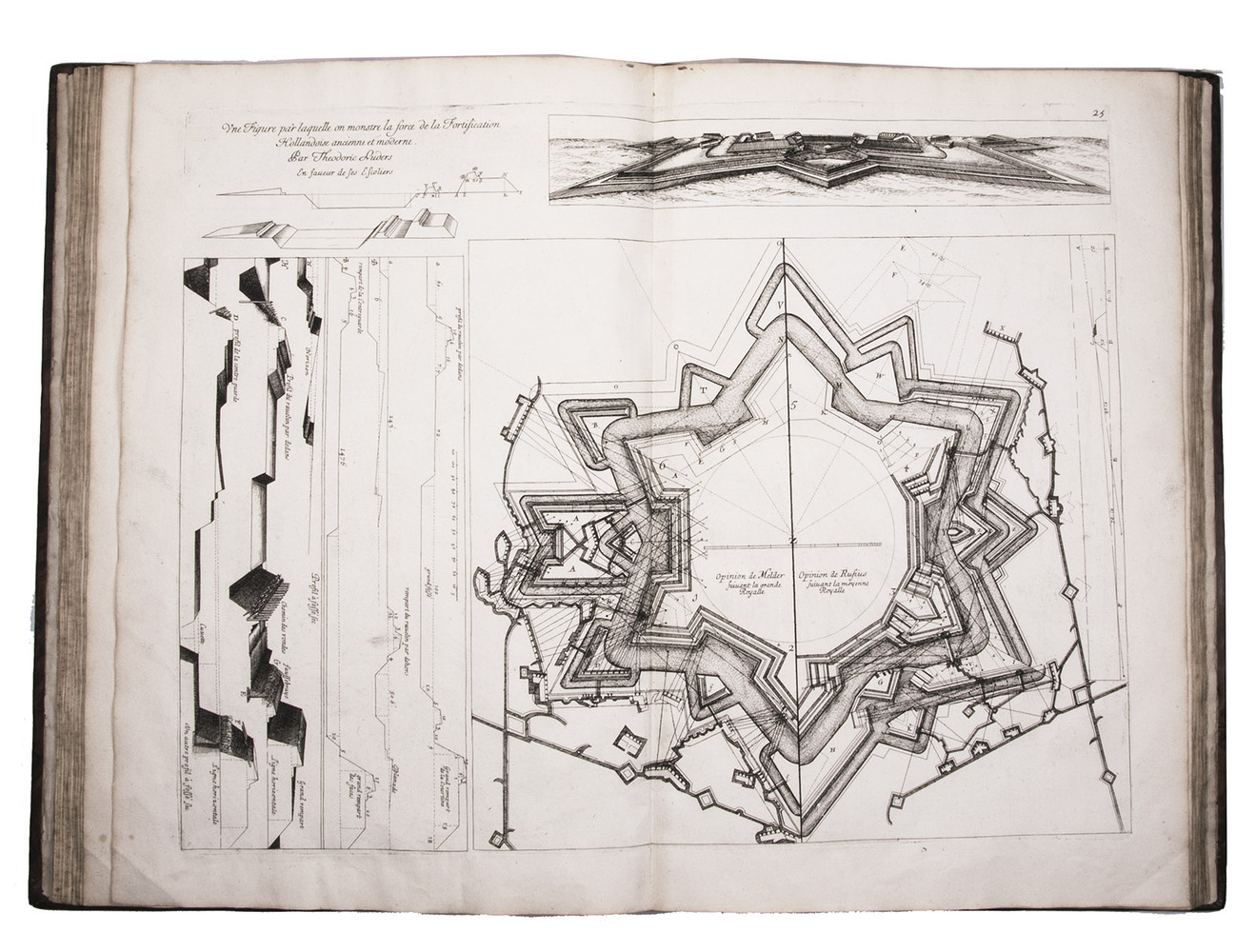 Small restored tear in the second title-page, slightly browned along the edges and some occasional minor spots. Binding restored and rebacked with original backstrip laid down. A good copy of a beautiful engraved book on mathematics and fortification. Goldsmith BMC STC French L2095 & L2096; Graesse IV, p. 290; not in Honeywell; Kress; Norman Library; Osler.