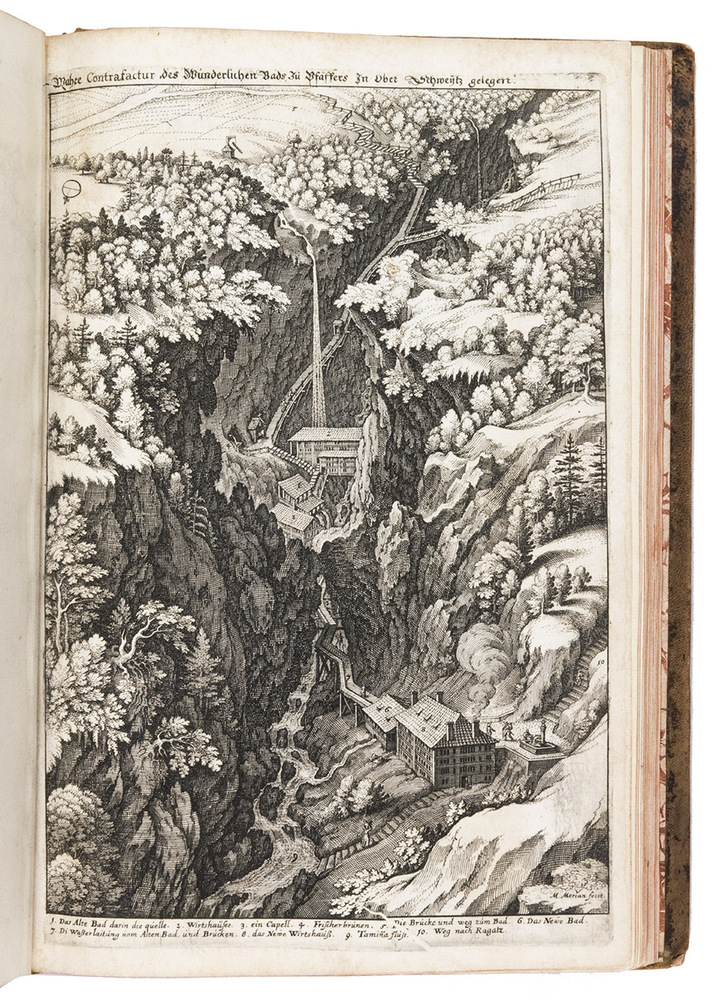 First edition of the famous topography of Switzerland, richly illustrated by Matthäus Merian (1593-1650). The main interest of the work is in the engravings, which are of the highest artistic standard. Nearly all the plates are double-page, with an occasional larger folding or single-page plate. They provide finely executed plans and views of the towns and regions mentioned in the text. The text is by Martin Zeiler (1589-1661). This is the first of Merian's topographical works to deal with his native country, Switzerland.