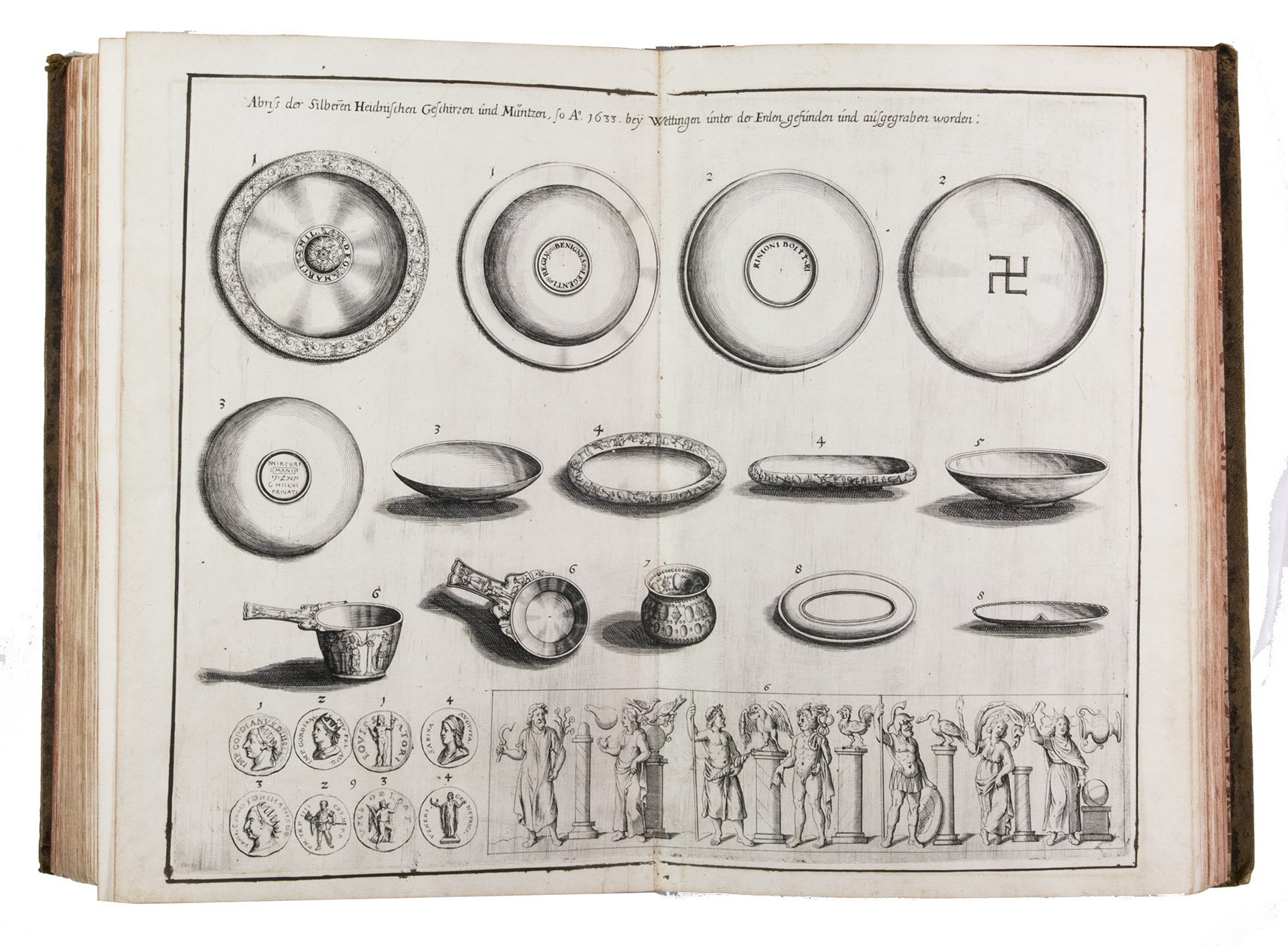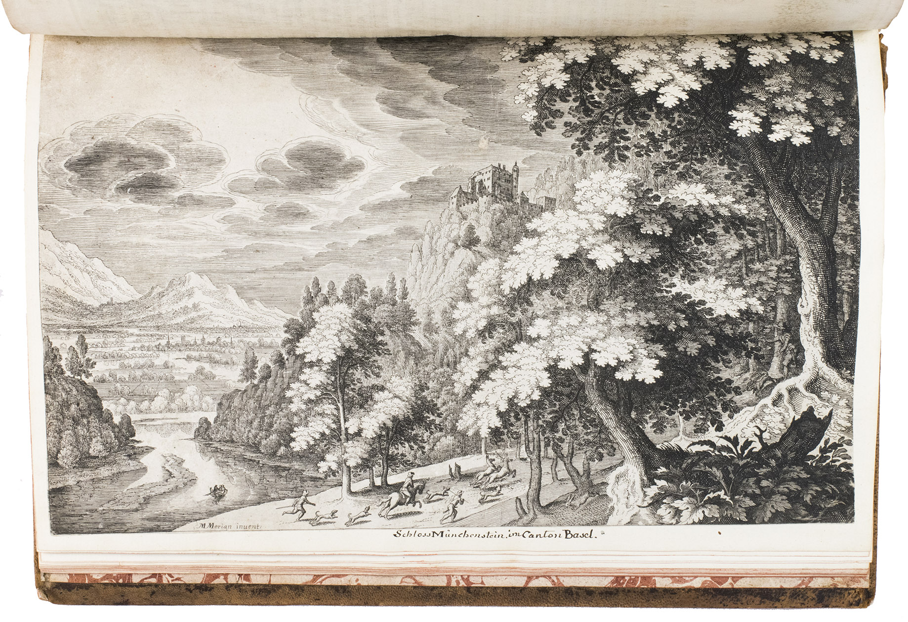 Wüthrich notes that his illustration 62+ is not usually present in Merian's 1642 first edition, and it is not present here. He notes his illustrations 64+ and 88+ as a normal part of this edition, but they are lacking here. The present copy contains all other plates called for by Wüthrich plus the folding view from the 1653 Anhang and the 67 additional engravings listed above. With an occasional minor tear, stain or slight browning, but generally in good condition. The binding is scuffed but structurally sound. Eckardt, pp. 48-52; Schuchhard 62; Wüthrich IV, 1; cf. Introduction to the facsimile of the 1654 ed. (Kassel, 1960).
