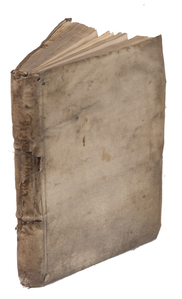 Lisbon, Jorge Rodriguez, 1620. 4to. With the elaborate woodcut coat-of-arms of the dedicatee, the Duke of Braganza, on the title-page, and the woodcut coat of arms of Portugal and/or King Philip II of Portugal at the head of his dedication on leaf [6]r, all text is set within a double fillet frame, and with woodcut decorated initials.  Contemporary parchment binding with manuscript title on spine. [10], 163, [1] ll.