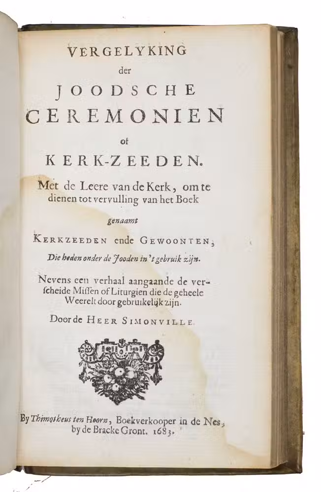 Kerk-zeeden ende gewoonten die huiden in gebruik zijn onder de Jooden ...Amsterdam, Timotheus ten Hoorn, 1683.