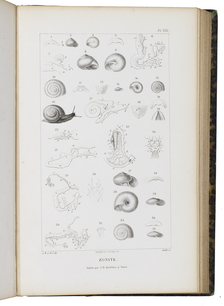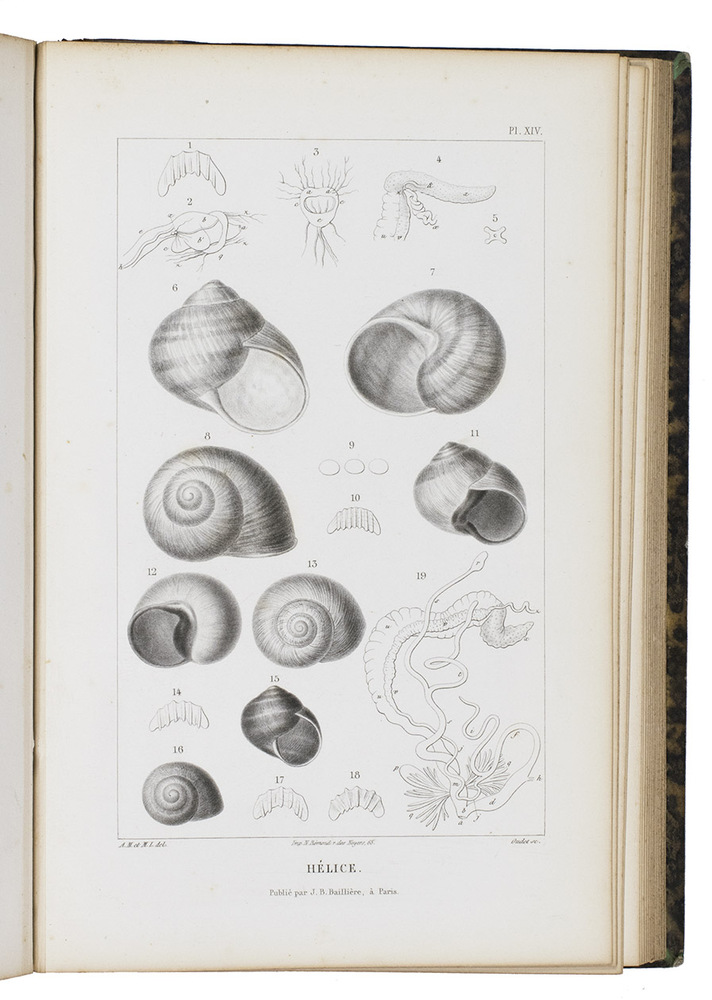 The French botanist Alfred Moquin-Tandon (1804-1863), professor of zoology and botany at Marseille and Toulouse, published his present history of French molluscs in 1855, the fruit of nearly twenty years of labour. It is recognised as one of the finest studies of molluscs from the mid-nineteenth century.