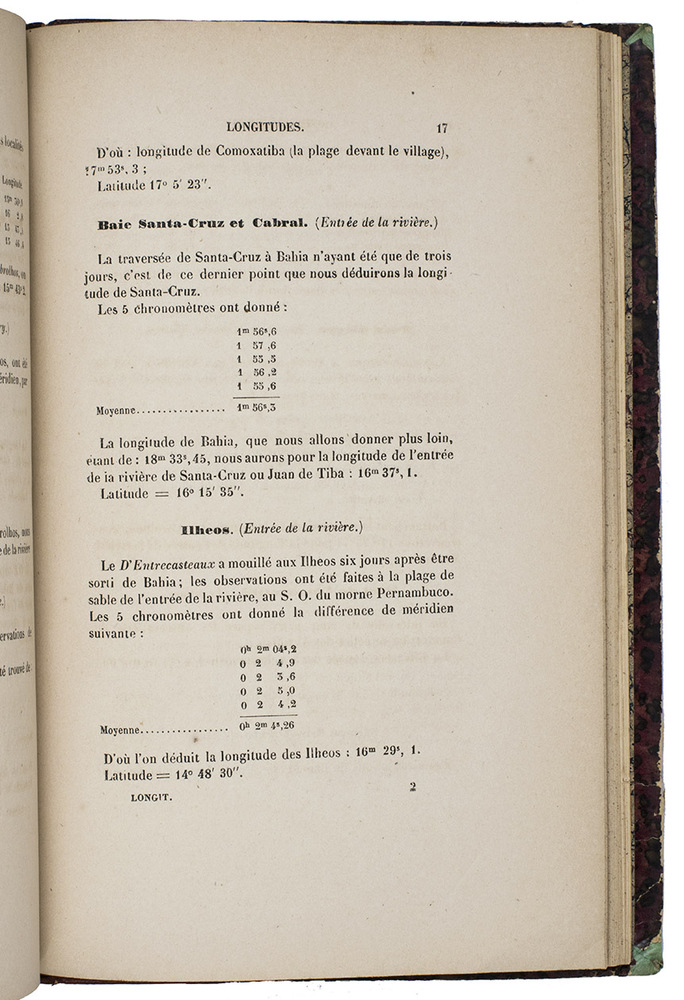 (2) MOUCHEZ, Amédée Ernest Barthélemy. Longitudes chronométriques des principaux points de la cote du Brésil, rapportées au premier méridien de Rio-Janeiro. Paris, Paul Dupont, 1863.