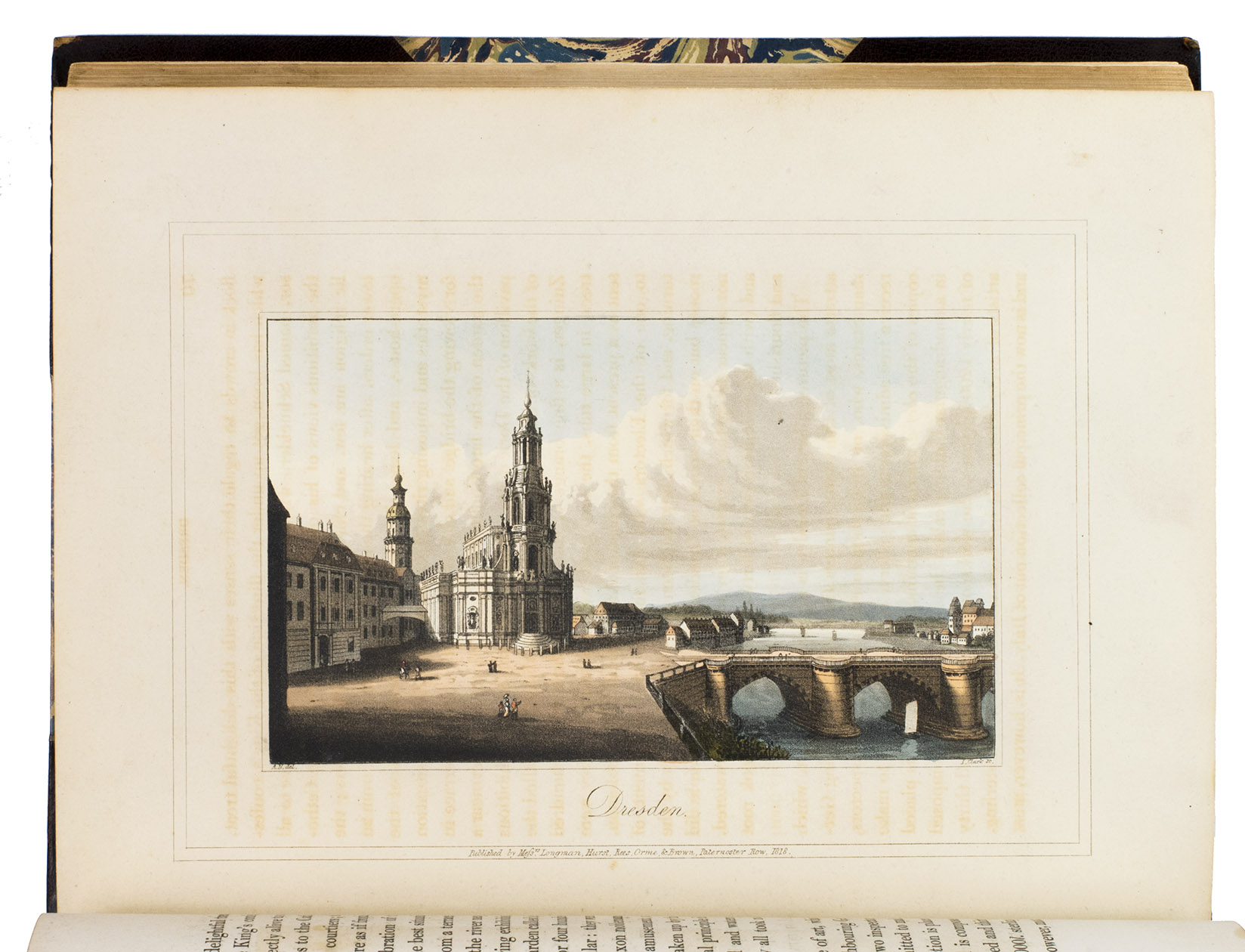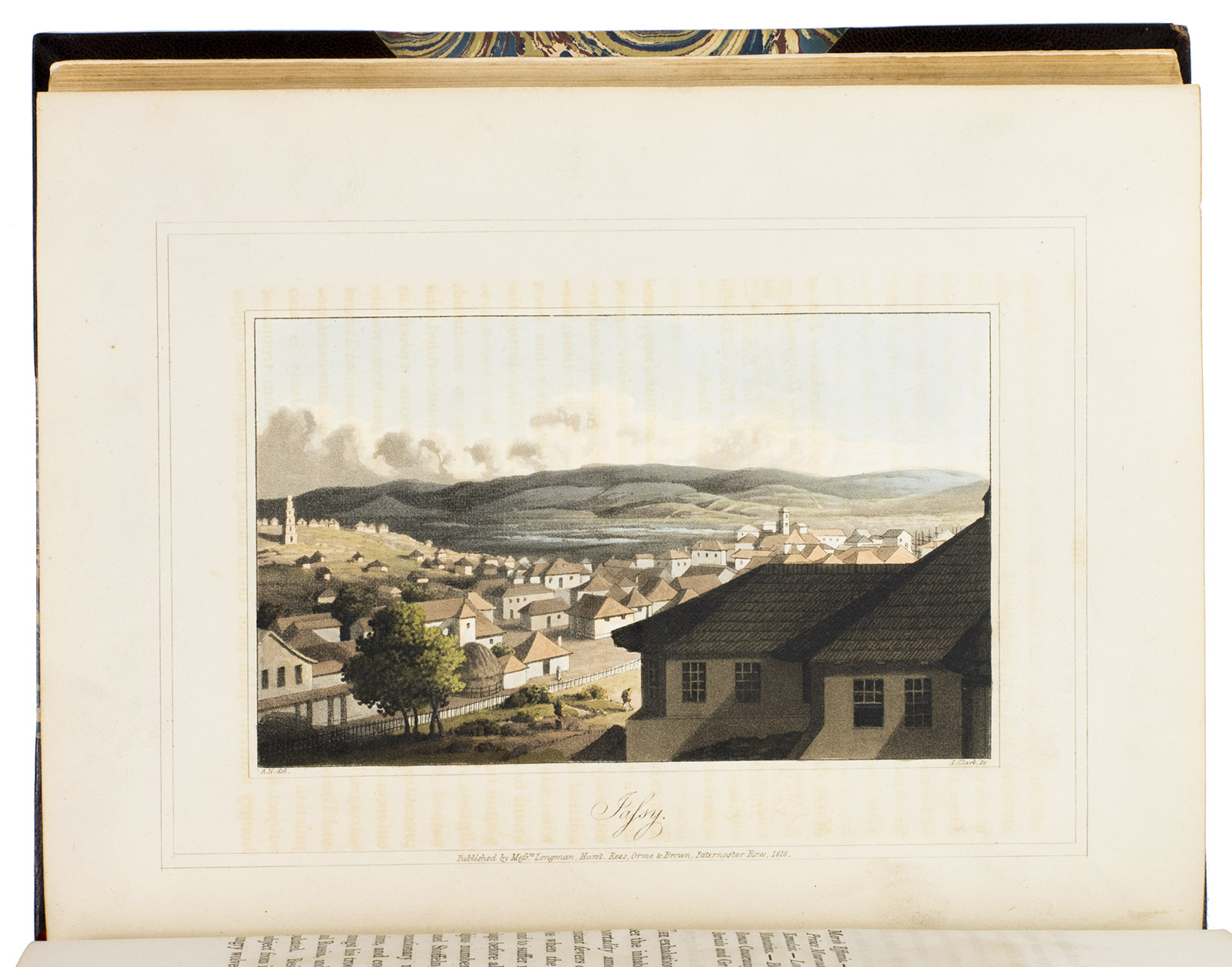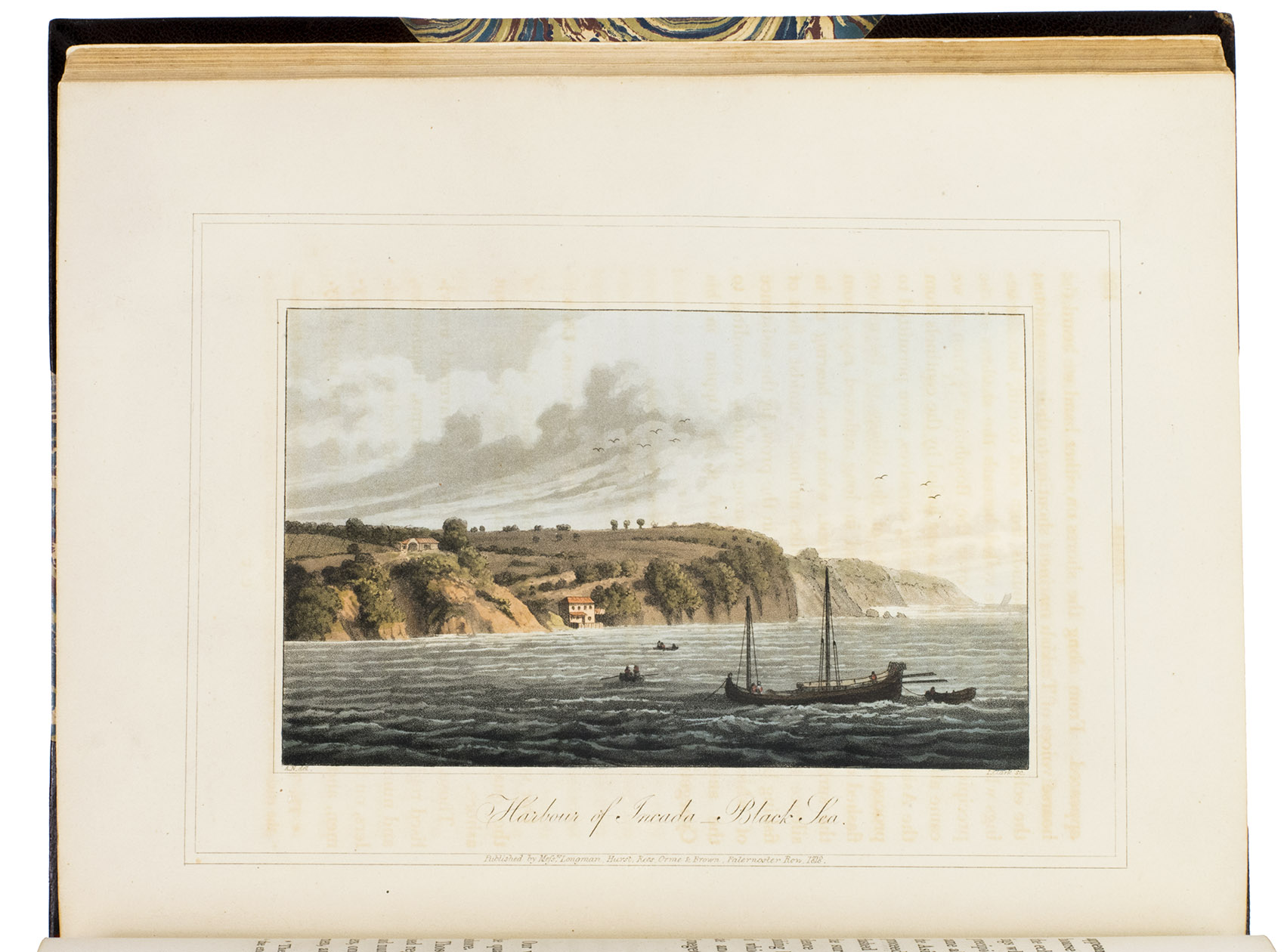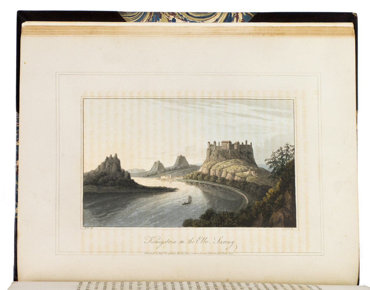 First and only edition of a vividly written account of a voyage through Germany, Poland, Moldavia and the Ottoman Empire, beautifully illustrated with fifteen coloured aquatints after the designs of the author. Adam Neale (ca. 1780-1832) of Scottish descent, was an army physician and writer. His first work, Letters from Portugal and Spain (1809), was a description of the events he experienced with the British forces under Sir John Moore and Sir Arthur Wellesley during the terrible campaigns of Napoleon in Spain and Portugal. Neale subsequently visited Germany, Poland, Moldavia and the Ottoman Empire, ending up in Constantinople to take up his position as physician to the British embassy. The present work contains his autobiographical account of these travels from July 1805 to March 1806, partly through regions which had suffered, and were still suffering, the horrors and barbarism of the Napoleonic wars. The battle of Austerlitz had just taken place in December 1805. Neale added also many statistical data on the population, number of inhabitants, rulers, etc.