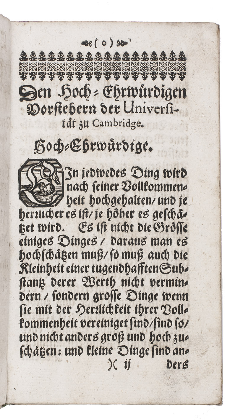 Hamburg, Johann Naumans and Georg Wolff, 1675. 8vo. Contemporary vellum. [16], 249, [7] pp.