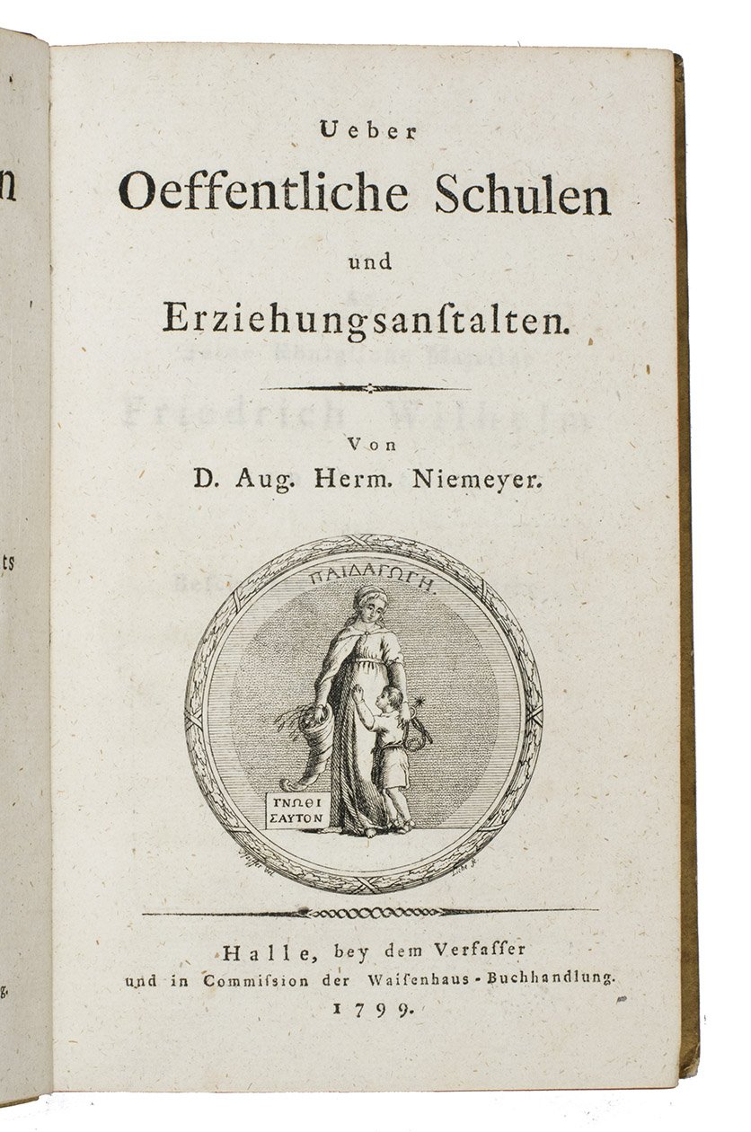 Halle, the author, Waisenhaus-Buchhandlung, 1799. 8vo. With engraved vignette on title-page. Contemporary boards. XVI, 328, [4] pp.