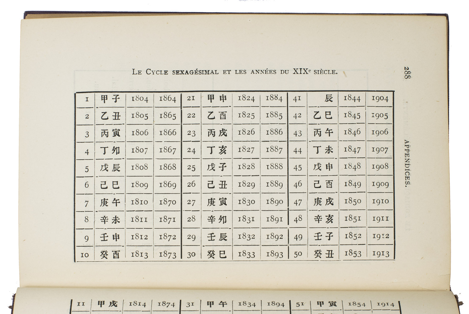 Hongkong, Imprimerie de Nazareth, 1899. 8vo. With an engraved printer's device on the title page, engraved tailpieces and Japanese characters. Contemporary blind-tooled glazed purple calico over boards, title in gold on spine. VII, 297 pp.