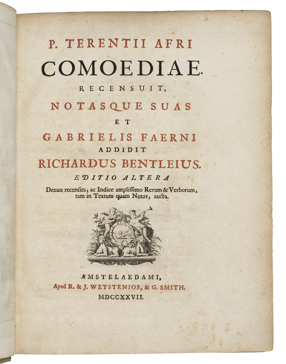 Here this edition is included in Bentleys edition of the Comedies of Terence. In the same year 1727 Burman launched his prestigious edition of Phaedrus (see nr. 31) attacking this Bentley edition rejecting many of the numerous frivolous emendations.
