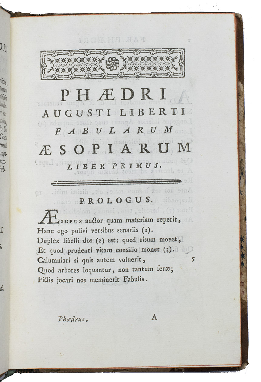 Nice and well-printed Venice edition of the Phaedrus and additional fables, based on the Burman recension.