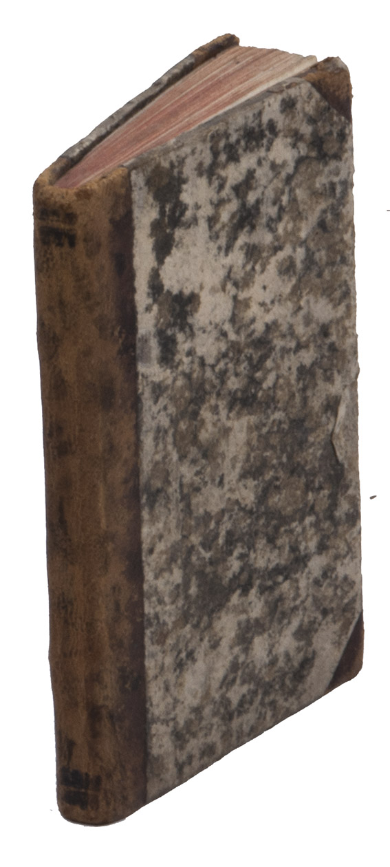 Nuremberg, ex off. Libraria Riegeliana, 1783. 16mo. With frontispiece: a reduced version of the frontispieces for the great Burman editions after Joseph Muller/Tydeman (98 x 60 mm.). Half calf, marbled paper over boards, red painted edges. 119 pp.