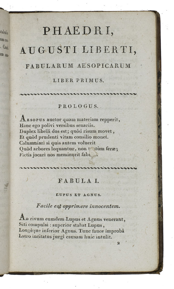 This neatly printed Latin Phaedrus edition, together with his life and the sententiae of Syrus, is one of his first editions printed with the new technique.