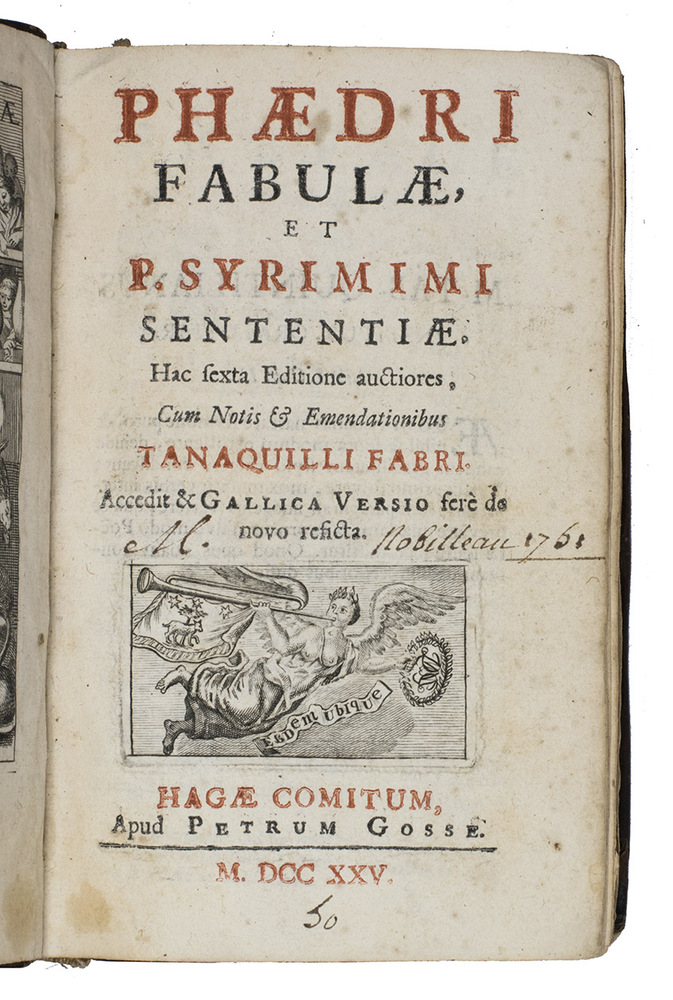 Phaedri Fabulae, et P. Syri Mimi Sentantiae. Hac sexta editione auctiores, cum notis & emendationibus Tanaquilli Fabri. ...