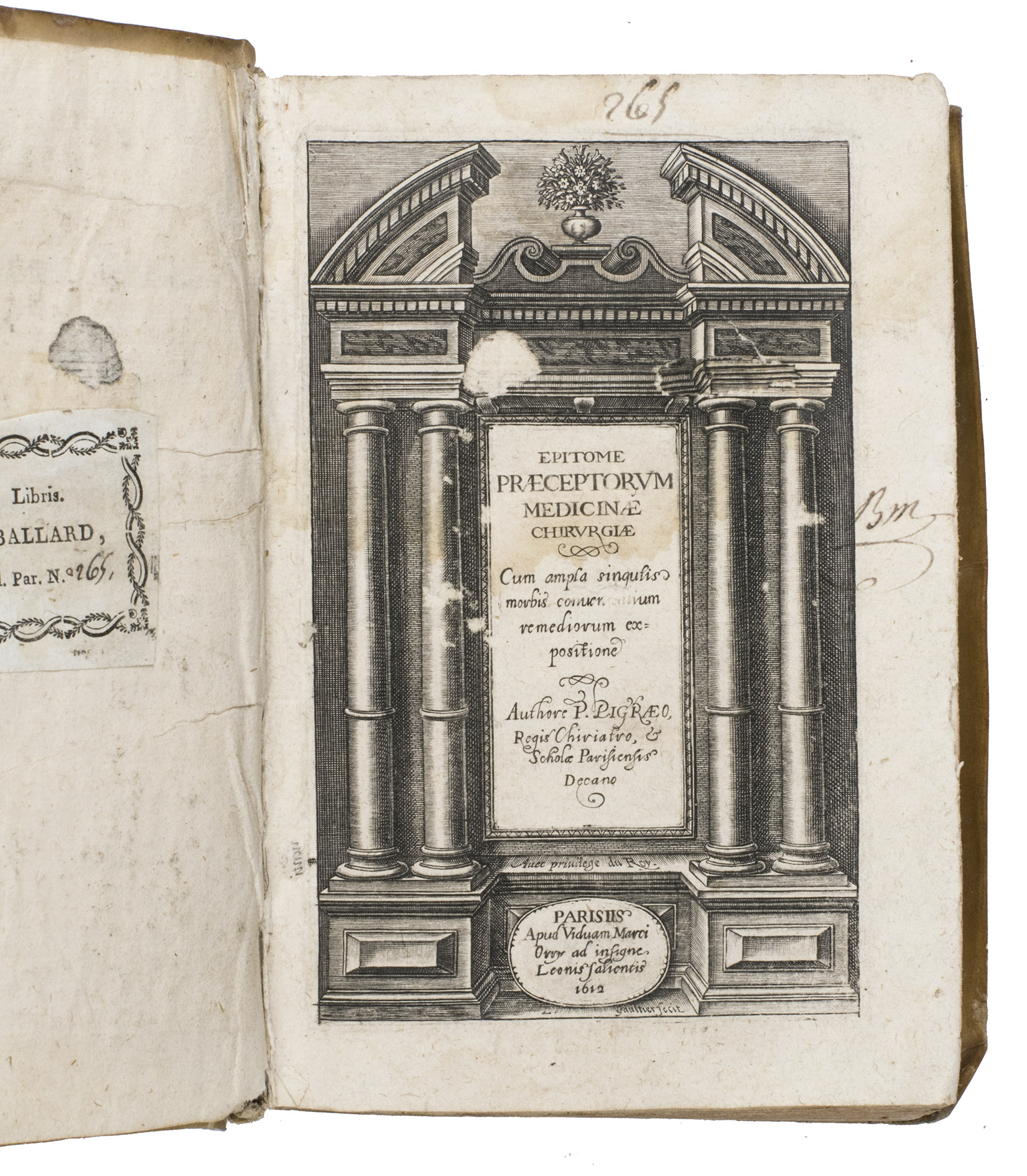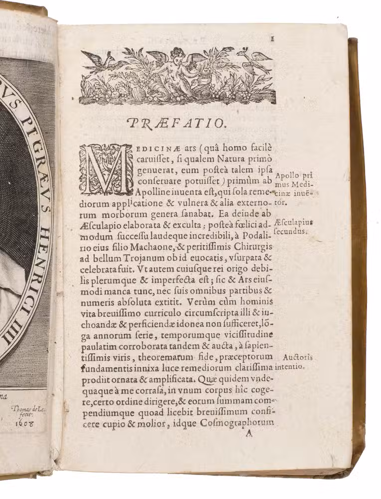 Rare first edition of a remarkable Latin medical manual by the French surgeon Pierre Pigray (ca. 1532-1613), also known as Petrus Pigraeus. Drawing on decades of practical experience and the teachings of his mentor, the well-known Ambroise Paré (1510-1590), Pigray offers a comprehensive guide to surgery, diseases, wounds, fractures, and other medical conditions.
