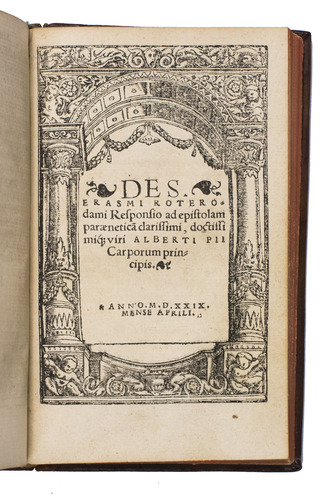With: (2) ERASMUS, Desiderus. Responsio ad epistolam paraneticam Albert Pii Carporum principis.