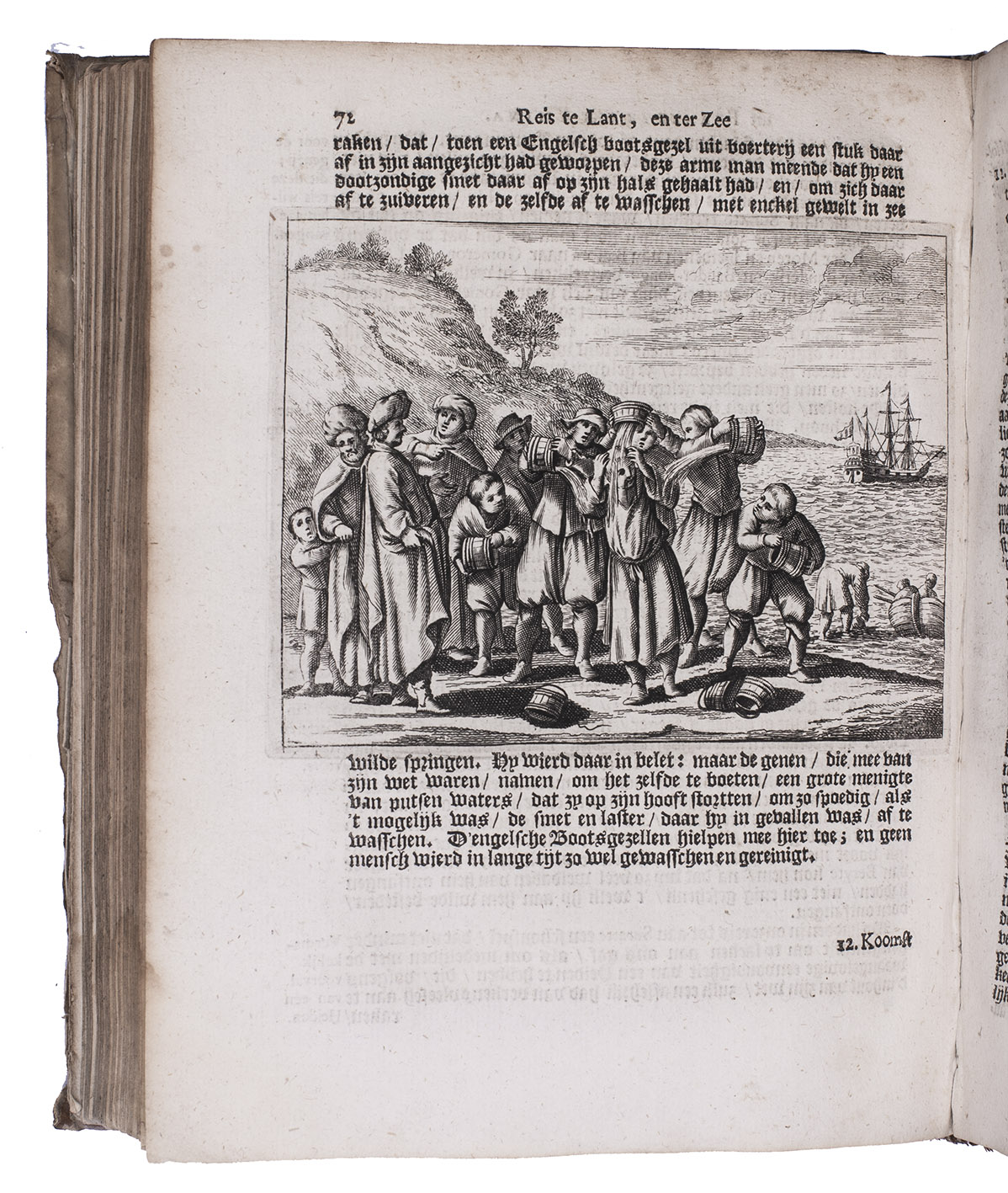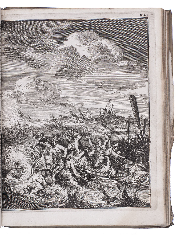 The German adventurer Volquard Iversen sailed to Batavia in 1655, and served as a soldier for the VOC for three years on the island of Seram. He sailed for Europe in 1661 on the Arnhem, but was wrecked in the Indian Ocean: the account is illustrated with a plate of this shipwreck. After 9 days in the ship's longboat, he reached the coast of Mauritius. It includes the last eye-witness account of a living dodo.