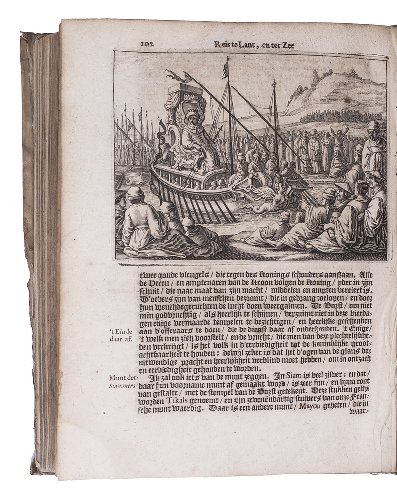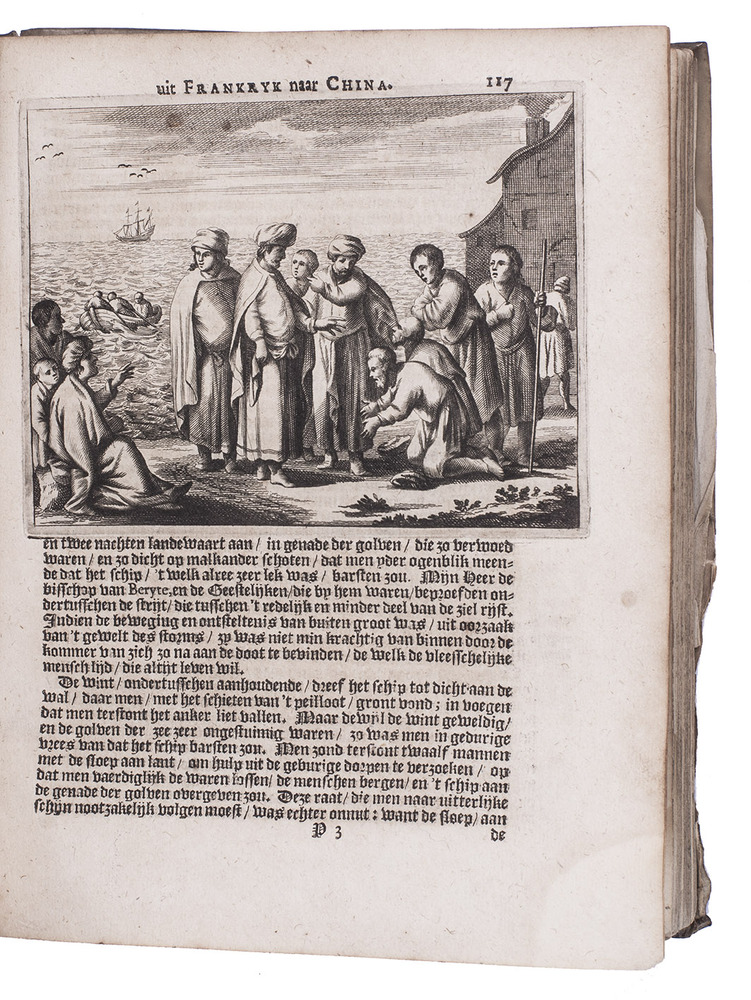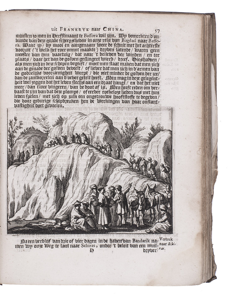 Ad 2: First Dutch edition of a popular account of an overland voyage from France to the Far East, ending in China, by Jacques de Bourges (ca. 1630-1714), who accompanied the French titular Bishop of Beirut, Pierre Lambert de la Motte, on the newly established Société des Mission Etrangères's first expedition to the Far East. They left Marseille in June 1660, and travelled via Malta, through the Holy Land, Syria, Iran, Iraq and India, to Siam (Thailand). Bourges gives extensive descriptions of the people, their customs and costumes, and the places he visits. The book ends with some notes on the bishop's voyage to China by sea and on Bourges's return voyage to France and to Rome, where he reported on the conditions for missionary work in Siam.