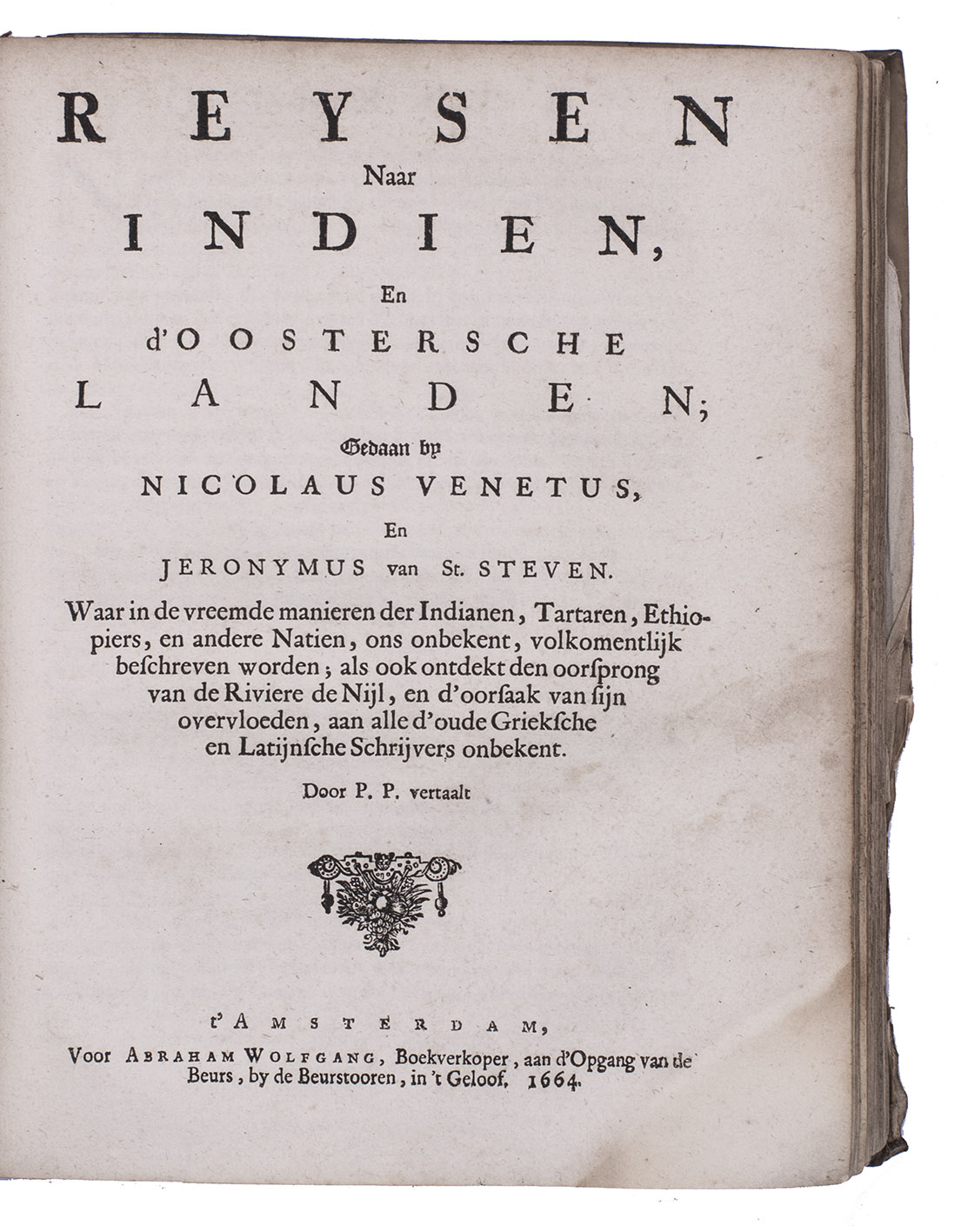 -[BRACCIOLINI, Poggio, and Girolamo di SANTO STEFANO]. Reysen naar Indien, en d'oostersche landen; gedaan by Nicolaus Venetus, en Jeronymus van St. Steven.