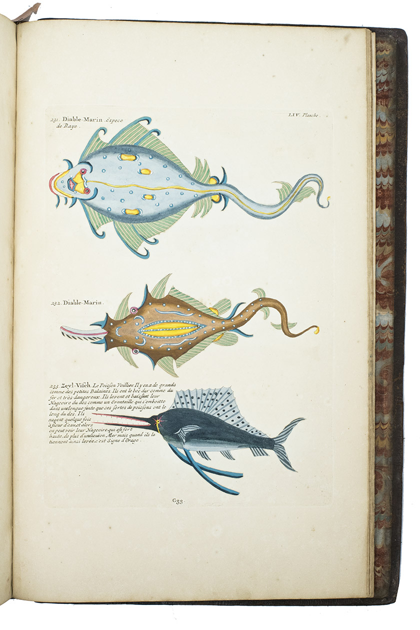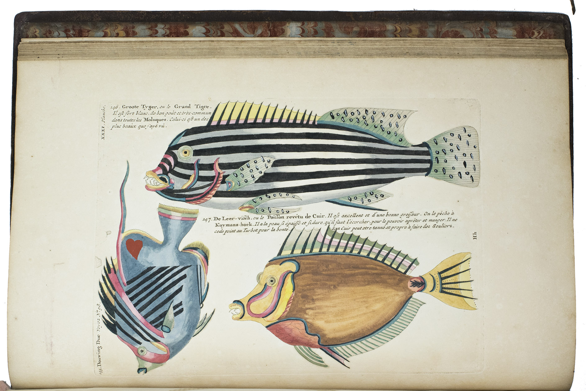 The Amsterdam publisher and bookseller Louis Renard compiled this collection of ichtyological illustrations by copying the sets of drawings which were brought to Amsterdam by Frederik Julius Coyett, the son of the governor and ambassador of Ambon and Banda, Balthasar Coyett. The drawings in the first part were copied after the collection of Balthasar Coyett. The illustrations in the second part were copied by Samuel Fallours, a soldier in the service of the Dutch East India Company who started drawing marine life in the East Indies for the governors, after those in the collection of Andriaen van der Stel, governor of the Moluccas.