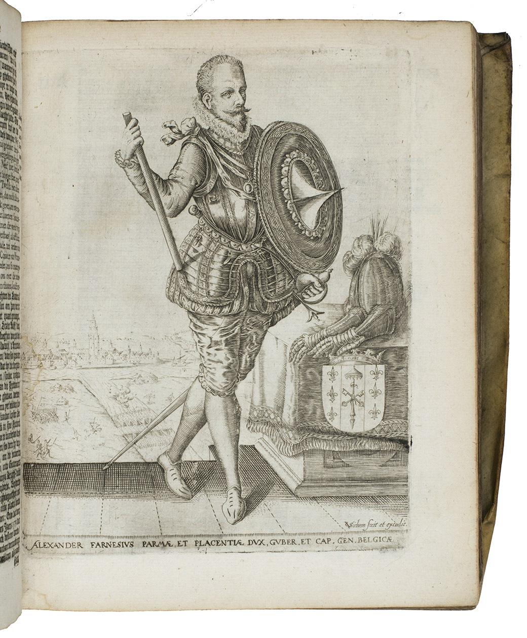 Arnhem, Ian Iansz., 1626. 4to. With engraved title-page and 25 portraits, mostly by C. van Sichem and K. van Sichem. Contempory vellum. [16], 734, [14] pp.