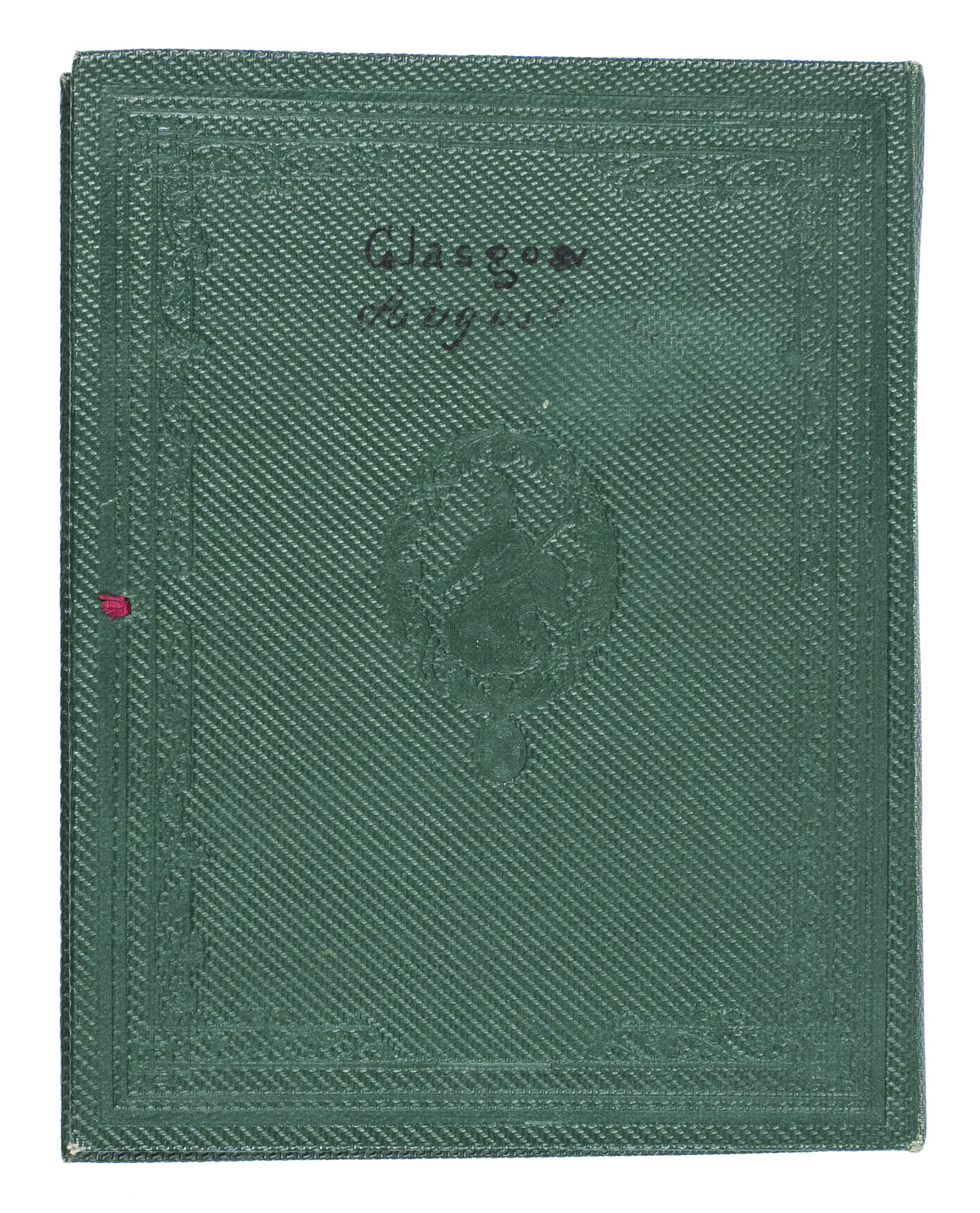 With a manuscript annotation on the back board in black ink ("Glasgow August"), the corners of the boards are very slightly rubbed and/or bumped, internally only occasionally very slightly foxed. Otherwise in very good condition. NSL digital publication listing Scottish printers, publishers, etc., "RITCHIE, Alexander", online via: https://www.yumpu.com/en/document/read/5677434/nafield-jean-printer-edinburgh-national-library-of-scotland; Ross, The Scot in America, p. 184; SPL Hand Coloured Rare Book Collection, splrarebooks.com ref 883 (1 copy); WorldCat 30854574 (2 copies); cf. for Hay's clans of Scotland engraved by A. Ritchie: WorldCat 1086952809 (4 copies).