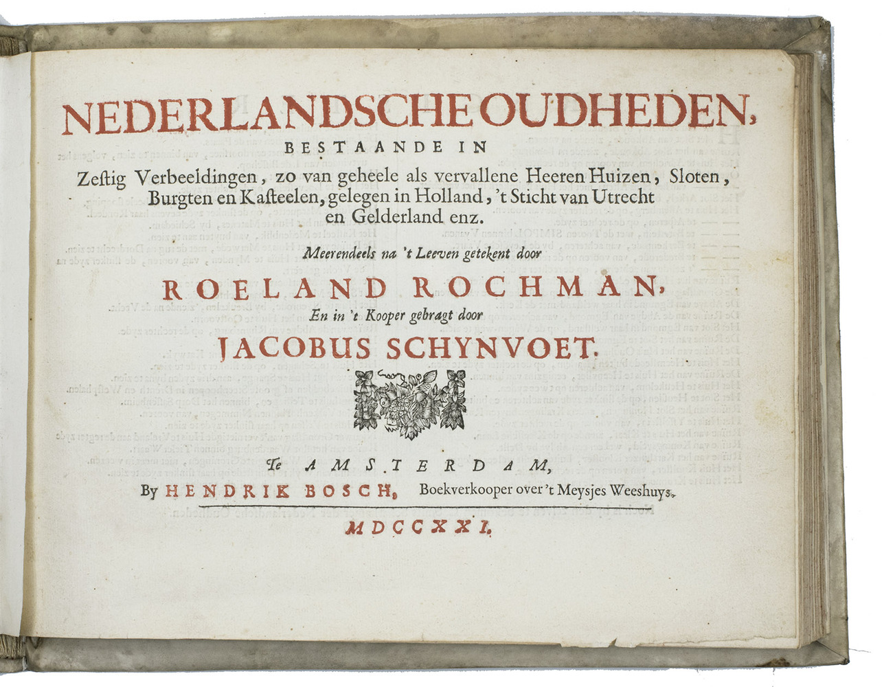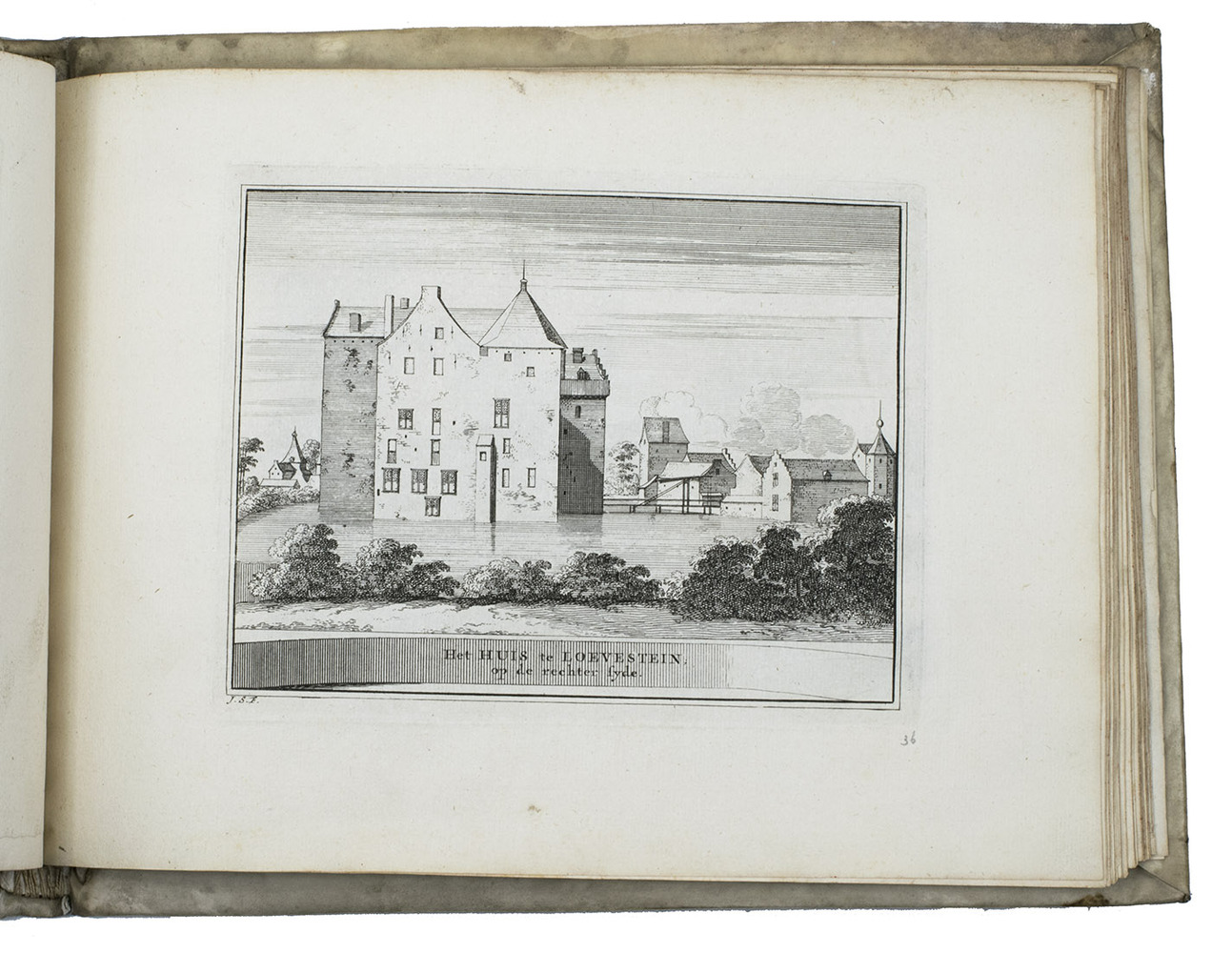 These 60 views appeared earlier in Ludolf Smids, Schatkamer der Nederlandse Oudheden (Amsterdam 1711), by the same publisher, and in its later editions. The first separate publication of the plates appeared in 1715 at Amsterdam, with no letterpress other than a title-page and a list of the plates, and appears to be extremely rare (1 copy in STCN). The present second edition is nearly as rare (4 copies in STCN).