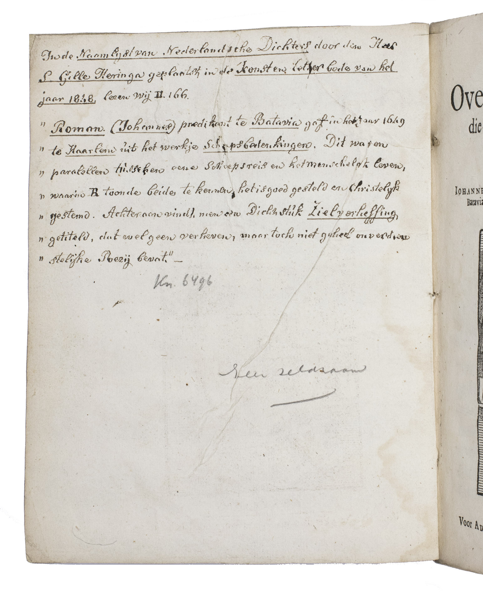 The author, born in Haarlem as son of the Dutch bookseller and publisher Adriaen Roman (1590-1649), went to Batavia in 1647, where he became a minister of a Malaysian church. He was active as a translator and in 1653, he wrote a manual of the Malay language, titled Grondt ofte kort bericht, van de Maleysche tale ..., which was published posthumously in Amsterdam in 1674 (and again in 1689).