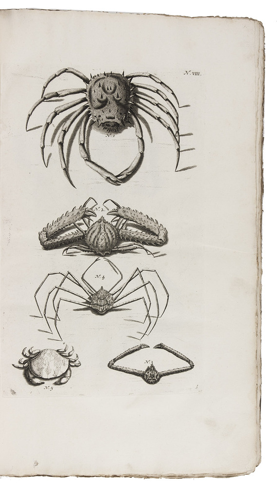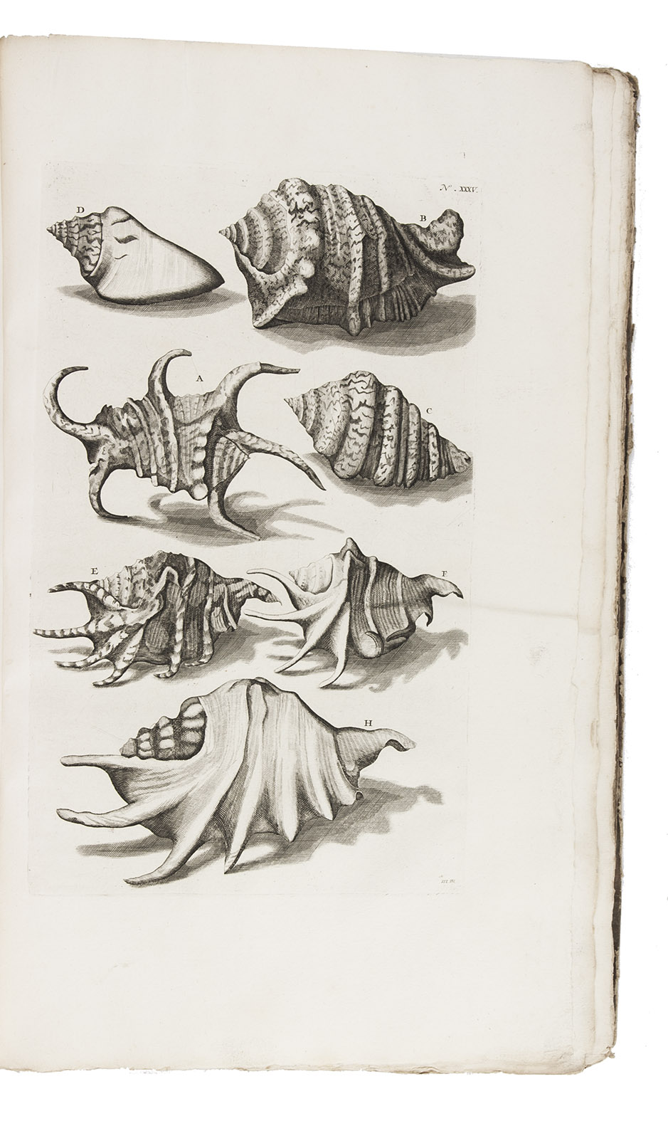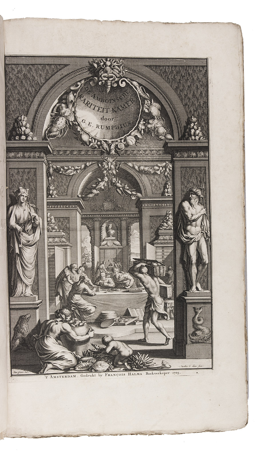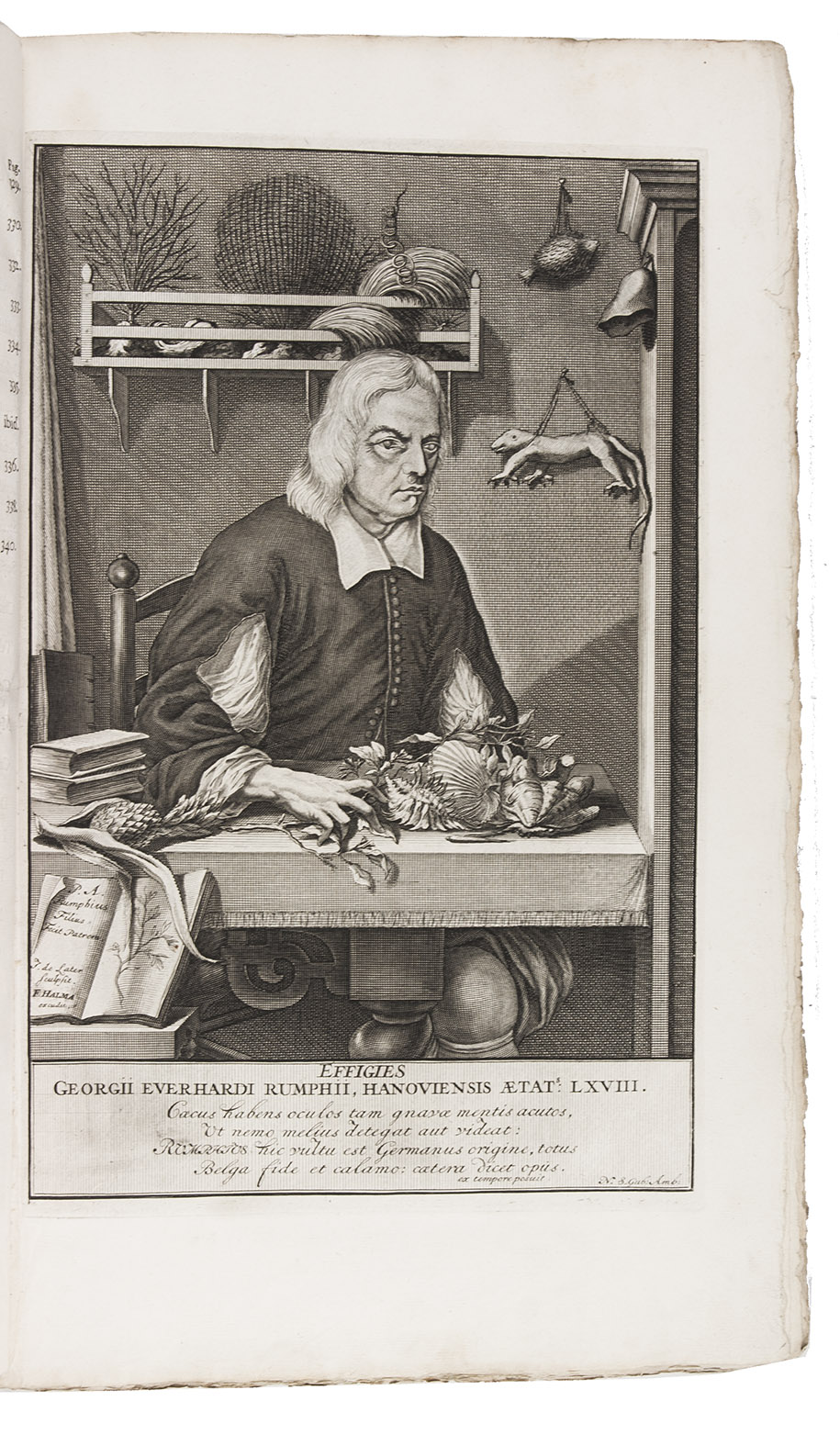 Second edition, in the original Dutch, of a monumental and splendidly illustrated account of Ambonese and other East Indian marine specimens excluding vertebrate fish, apparently drawn in the year of the death of the owner, Rumphius. The 60 large engraved plates show crustaceans, sea urchins, sand-dollars, starfish, shellfish, barnacles and coral, along with crystals, minerals, amber, fossils and even some man-made artefacts. Some plates show one large figure, others more than twenty small ones. Its precise descriptions and information on habitat anticipate modern marine biology.