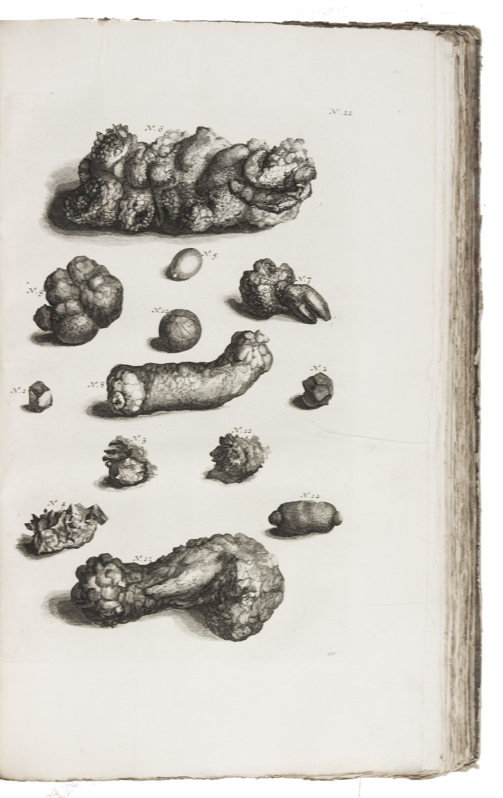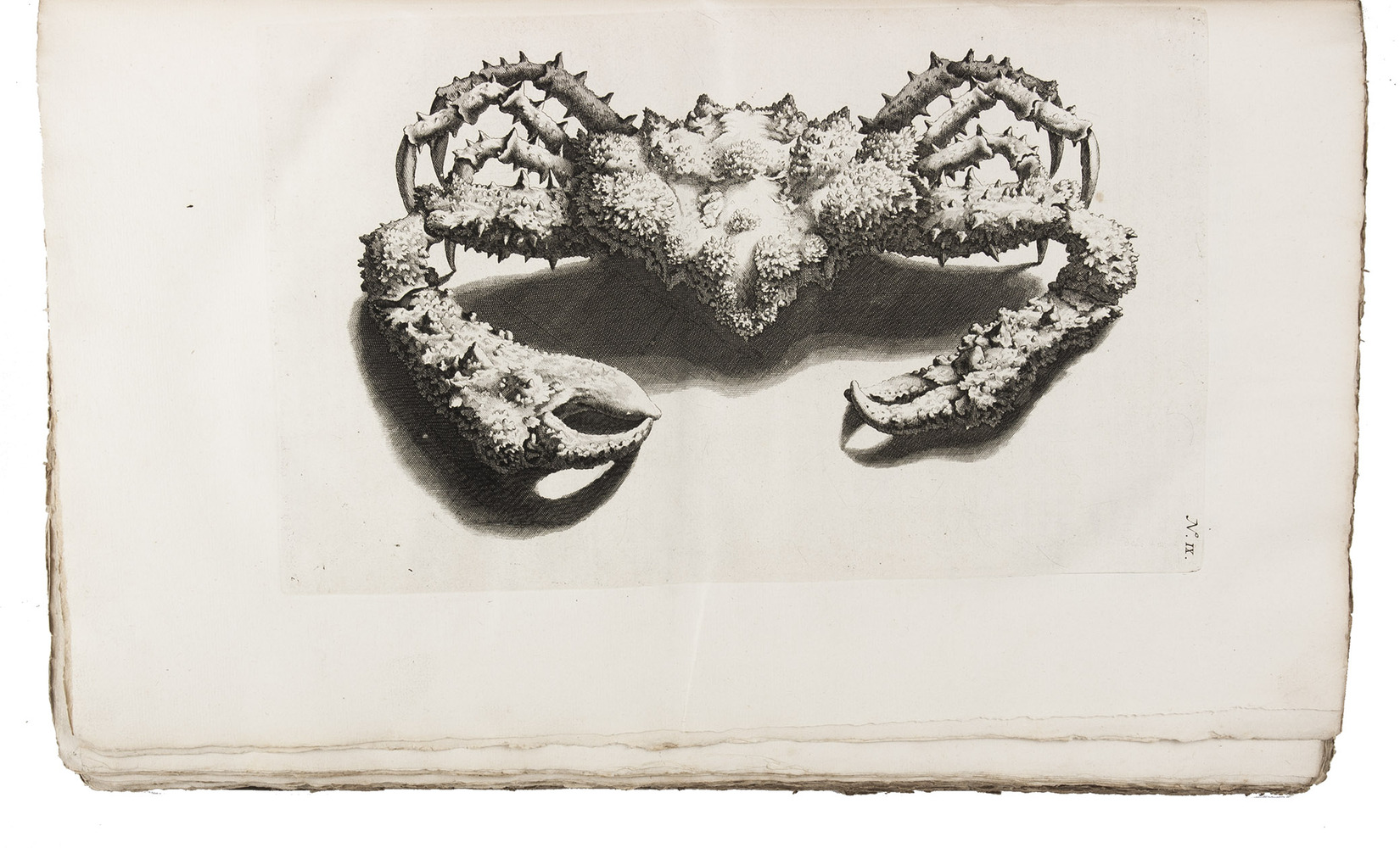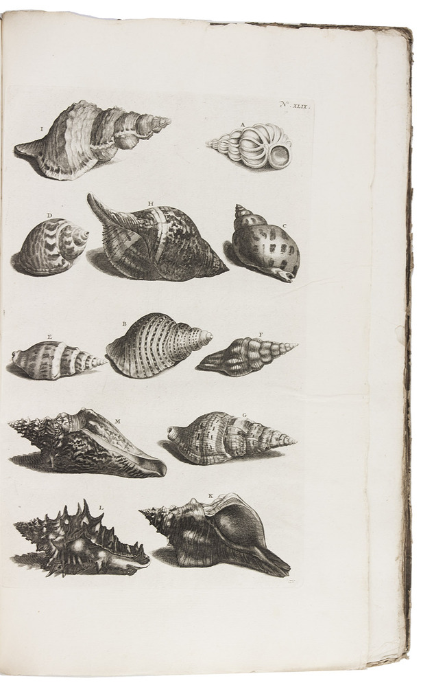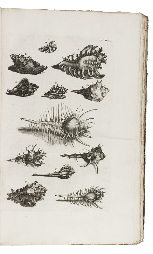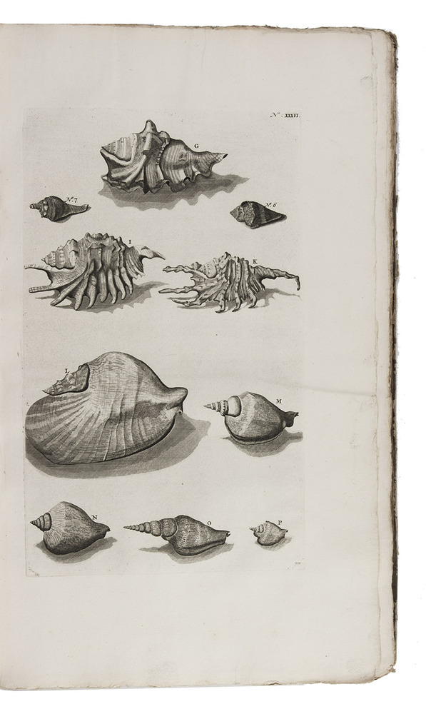 Second edition, in the original Dutch, of a monumental and splendidly illustrated account of Ambonese and other East Indian marine specimens excluding vertebrate fish, apparently drawn in the year of the death of the owner, Rumphius. The 60 large engraved plates show crustaceans, sea urchins, sand-dollars, starfish, shellfish, barnacles and coral, along with crystals, minerals, amber, fossils and even some man-made artefacts. Some plates show one large figure, others more than twenty small ones. Its precise descriptions and information on habitat anticipate modern marine biology.