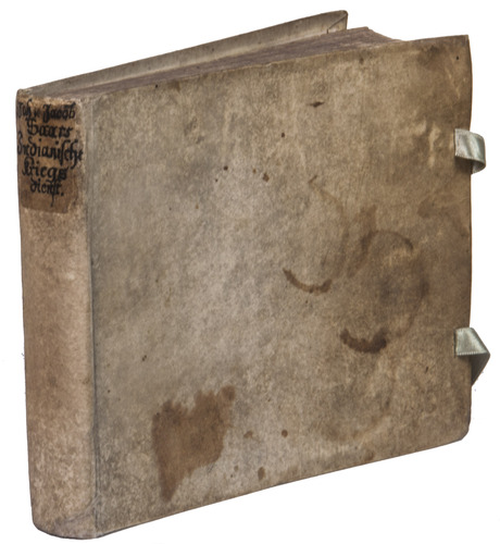 The vellum is somewhat soiled, with brown stains on the front and back, the ties and flyleaves have recently been replaced. The work is somewhat foxed throughout, with annotations in some of the margins. Otherwise in good condition. Cat. NHSM, p. 174; Landwehr VOC 308; Tiele 952; USTC 2567770 (9 copies); VD 17 23:253491D.