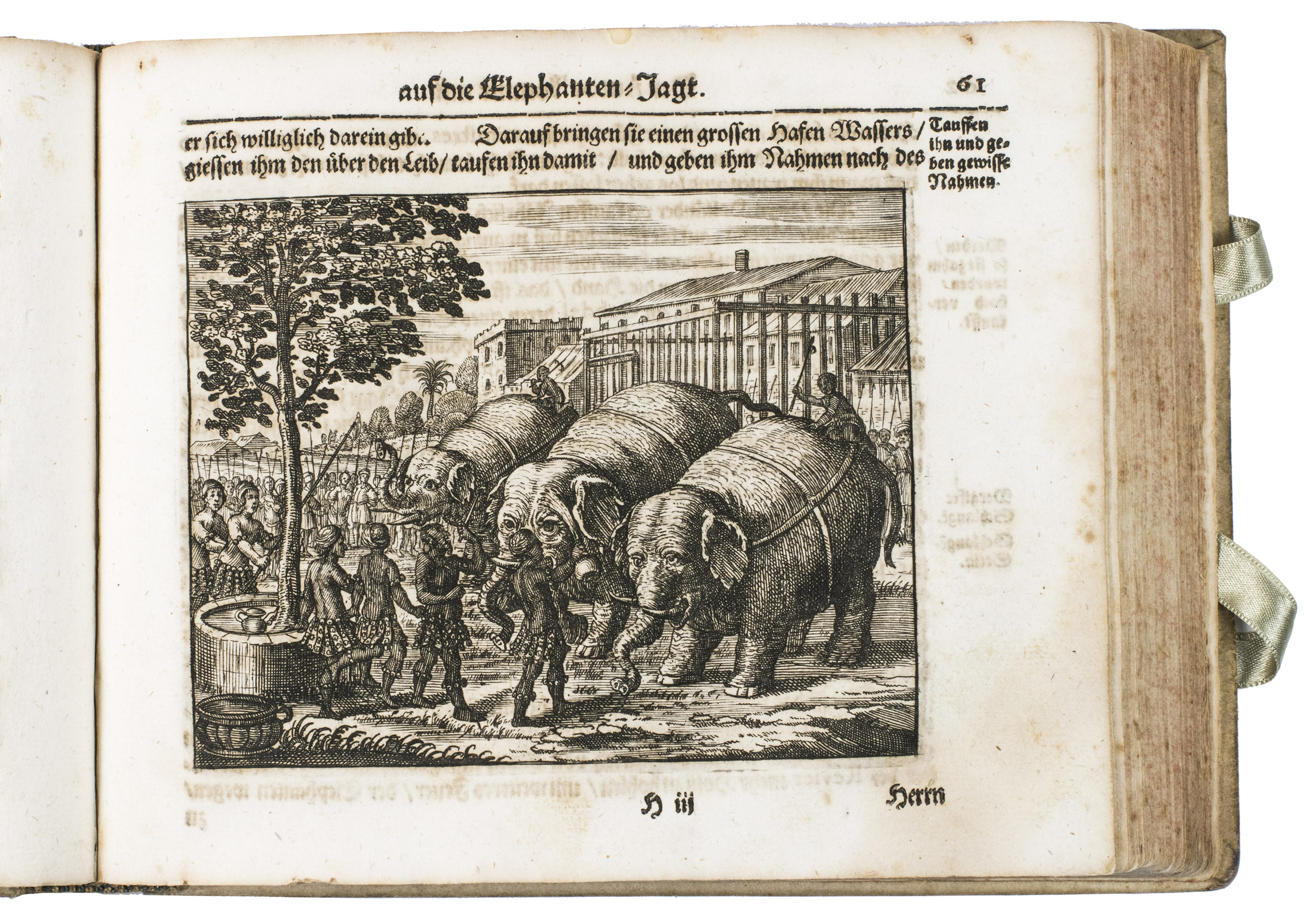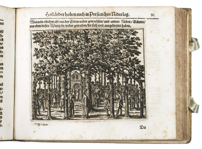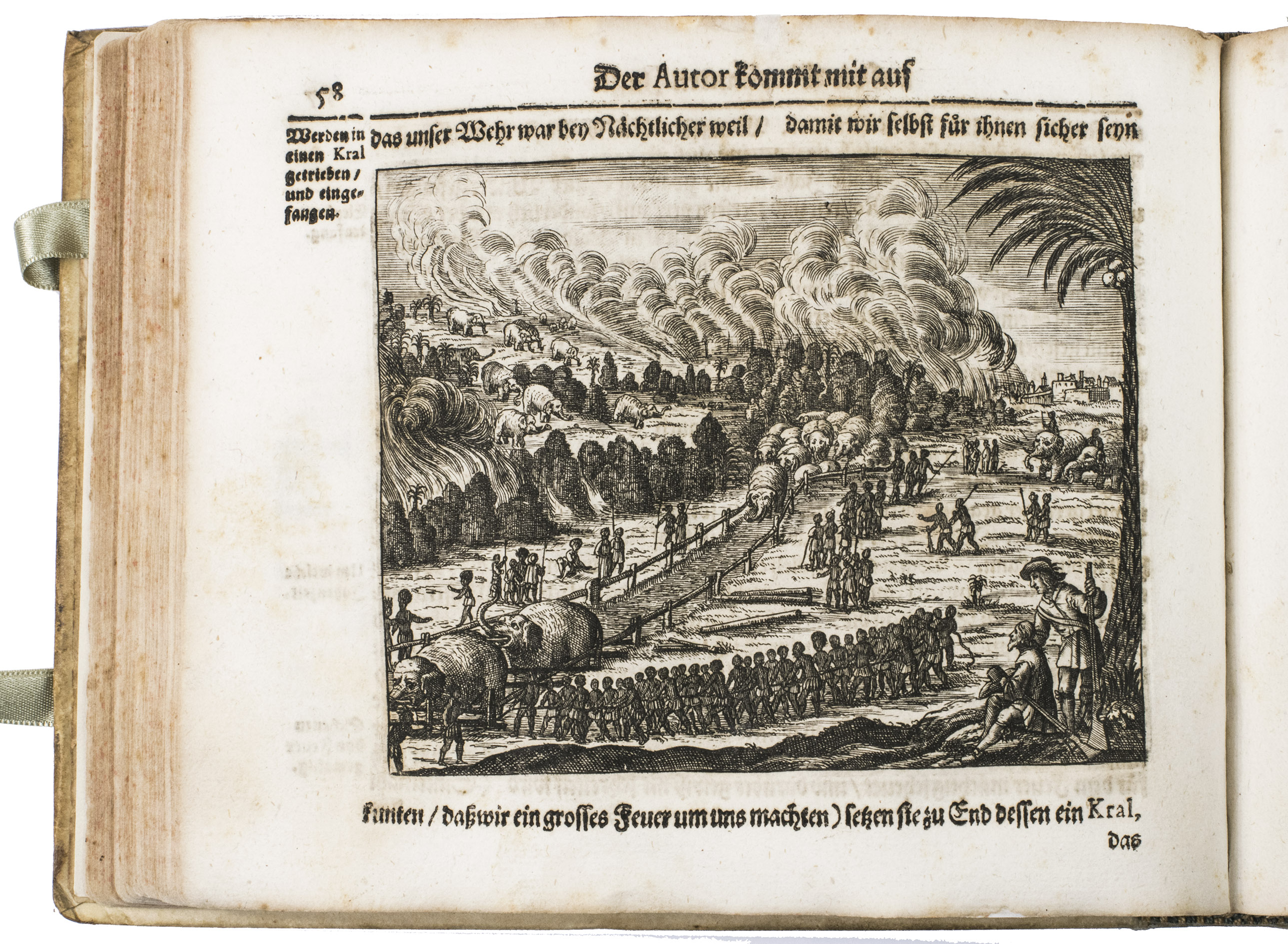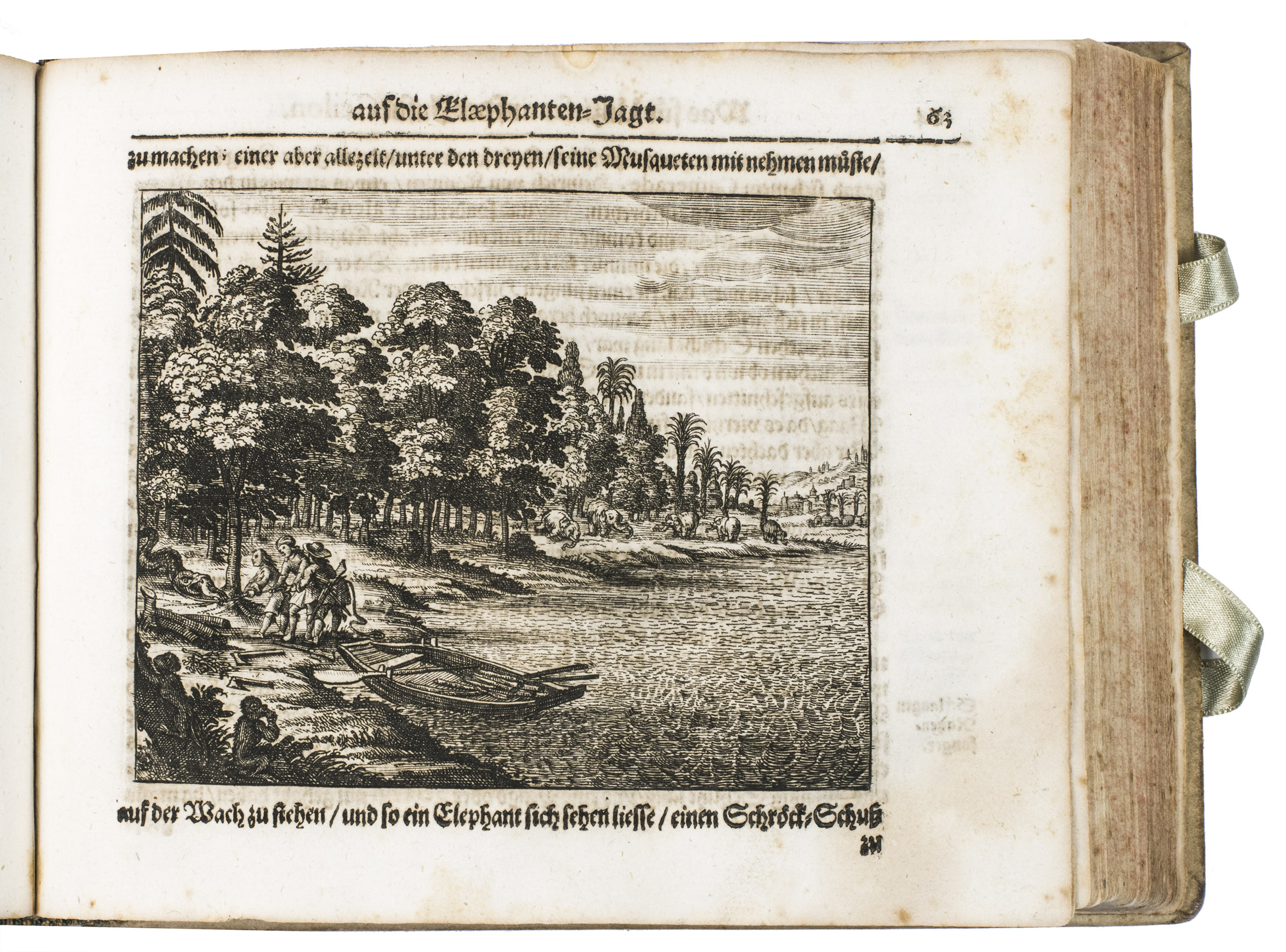 First edition of Johann Saar's extensive account of his travels from 1644 to 1659 in the Dutch East Indies, the Moluccas and Ceylon (present-day Sri Lanka). This account, with beautiful plates depicting various aspects of the East Indies, Ceylon and their cultures, including rare eye-witness depictions of native elephant hunting, is a great source of information for the 17th-century exploration of the East Indies and especially Ceylon. The first edition is quite rare, as we have only been able to trace two other copies in sales records of the past hundred years.