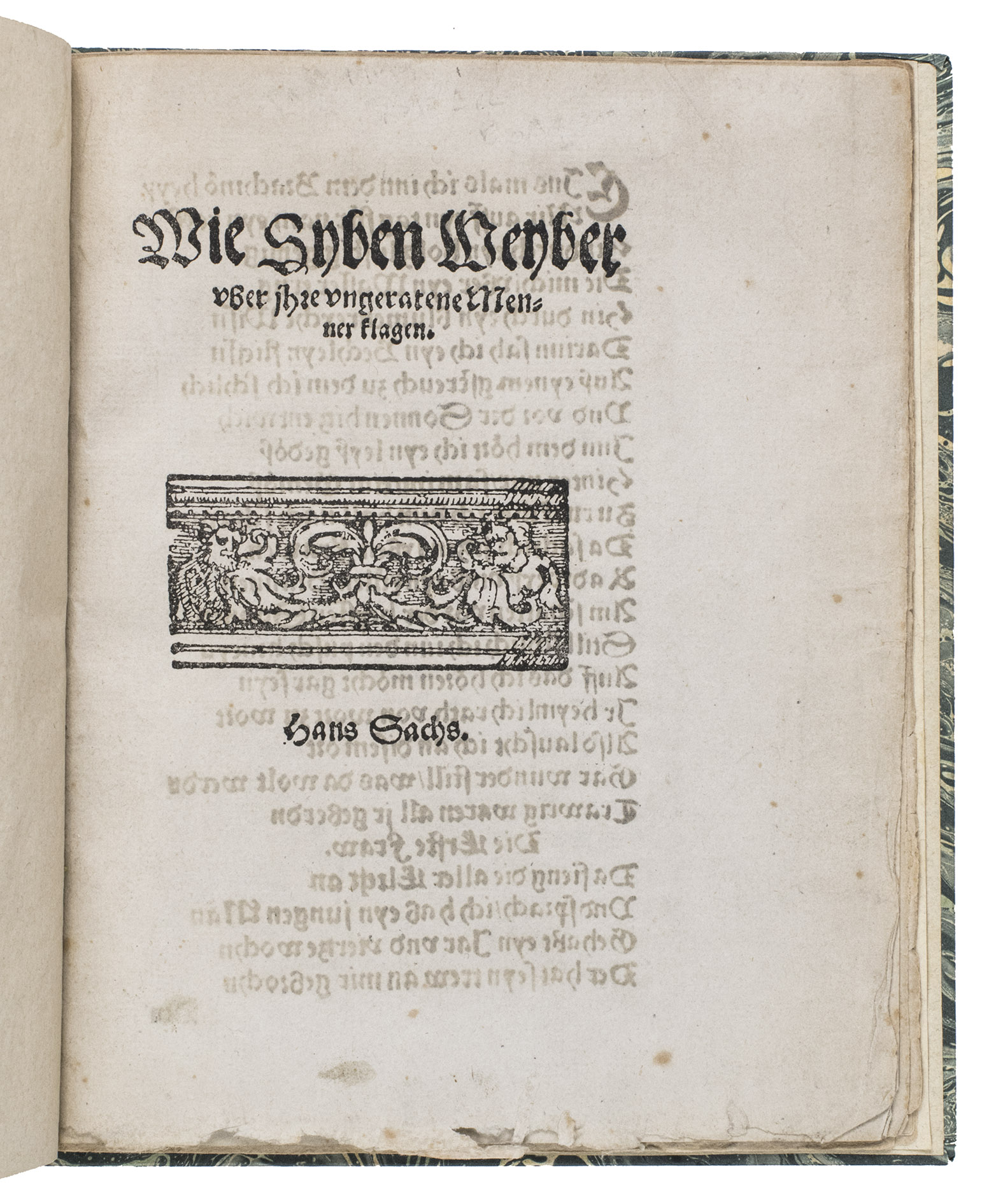 Ad 1 is the second edition of a satirical poem about seven women complaining about their wayward husbands. The piece was originally published as a broadside in 1531 and is the counterpart to another poem by Sachs about seven men complaining about their wives.