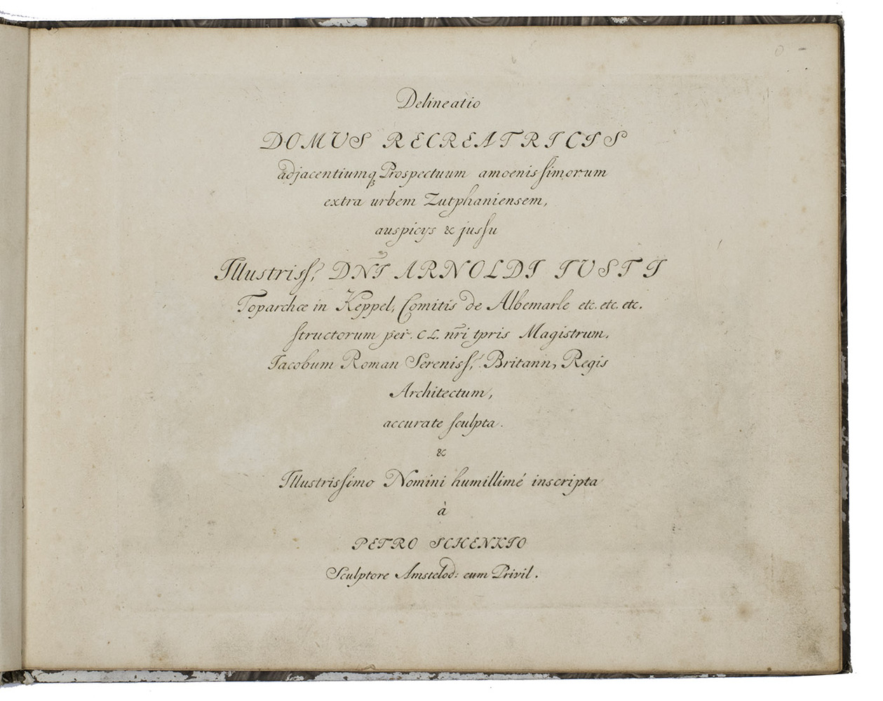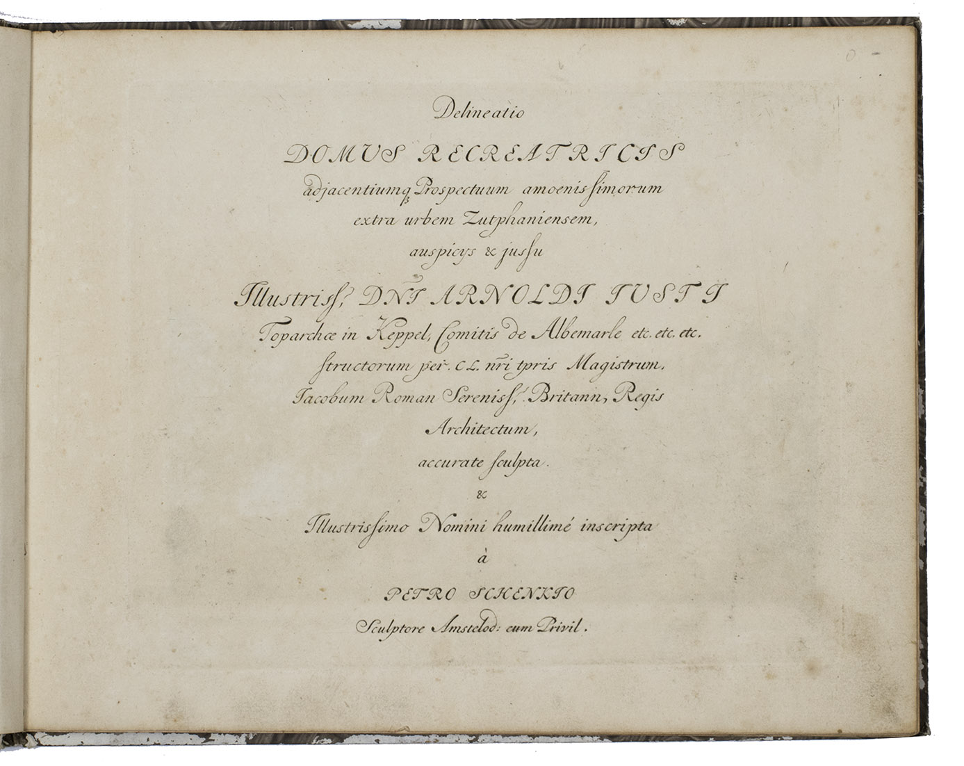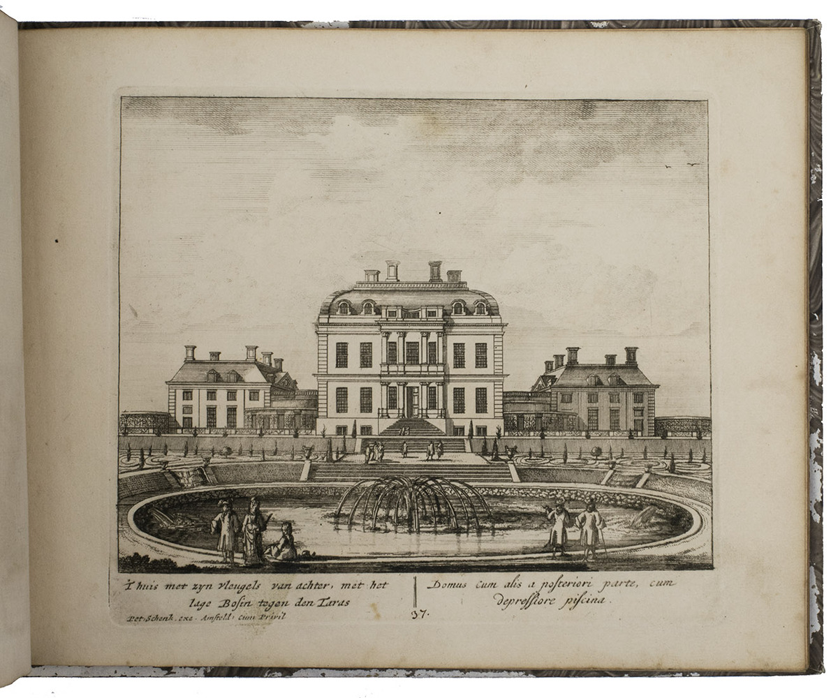 A magnificent series of 16 views of the house and gardens of "De Voorst", the country estate of Arnold Joost van Keppel (1669/70 - 1718), Baron of Ashford, Margrave of Bury and Count of Albemarle, built by the architect Jacob Roman (1640 - ca.1716). Each view has a caption in Dutch and Latin below, mostly in two lines.Van Keppel inherited the estate near Zuthphen in 1686. At the expense of King William III of England (formerly the Dutch Stadtholder Willem III), he replaced the modest buildings and grounds with the lavish palace and gardens that contemporaries dubbed "the Versailles of the Achterhoek". After the death of Van Keppel's widow the estate declined, parts were torn down in the 19th century and a fire destroyed the interior in 1943. The estate was restored in the 1950s and 1990s to the present state. Schenk's present architectural and horticultural series gives a detailed view of the buildings, gardens and fountains soon after they were built during the heyday of "De Voorst".