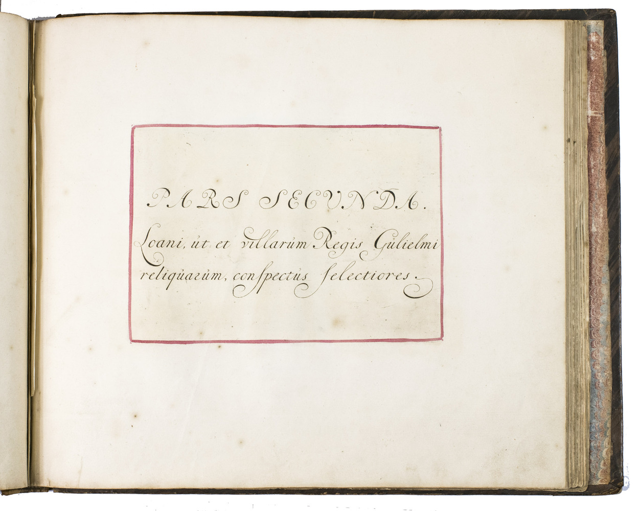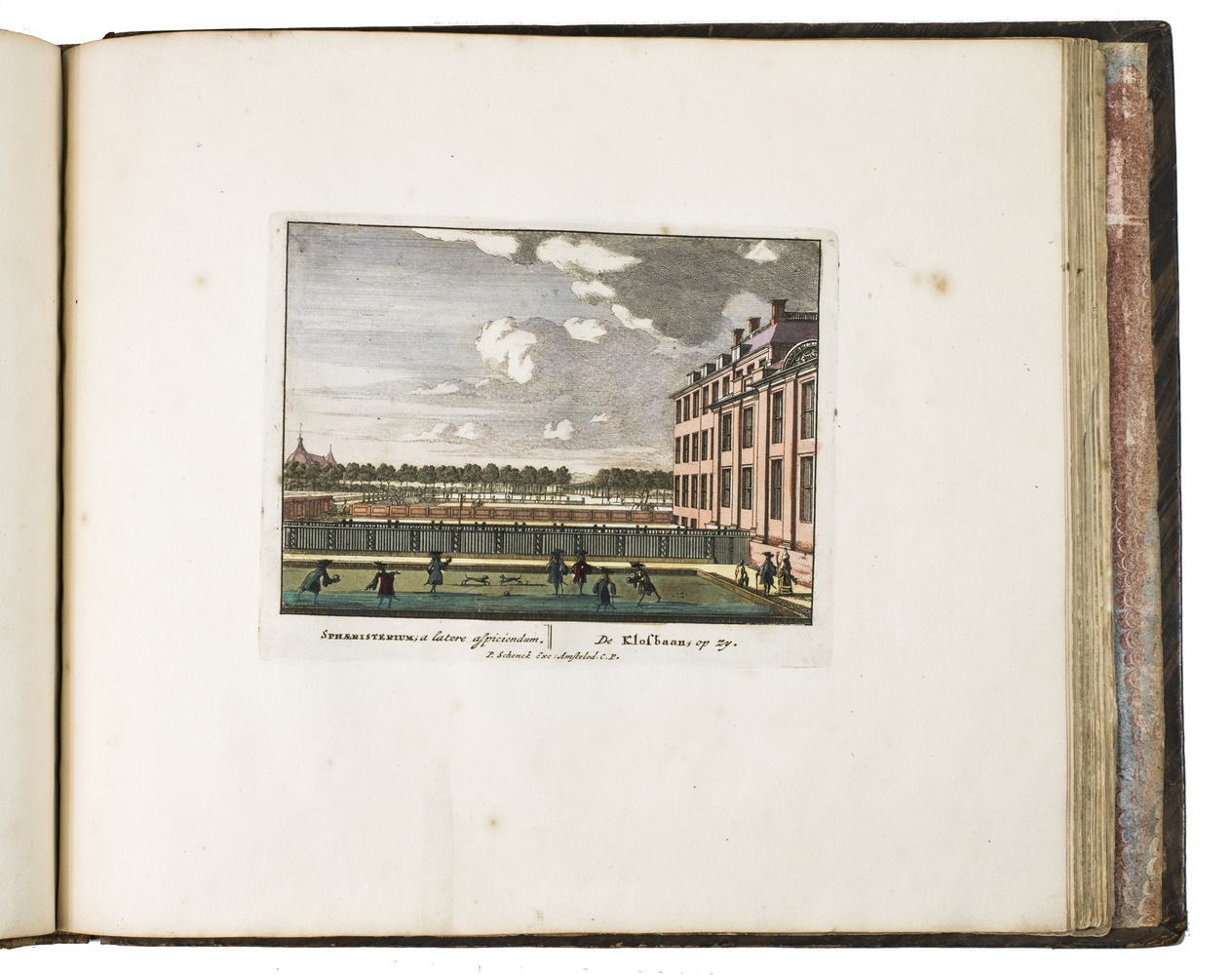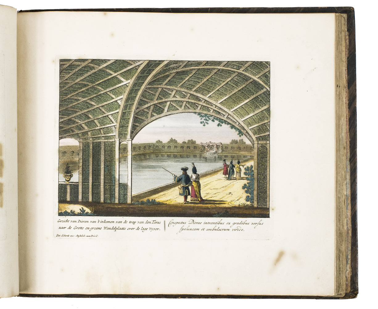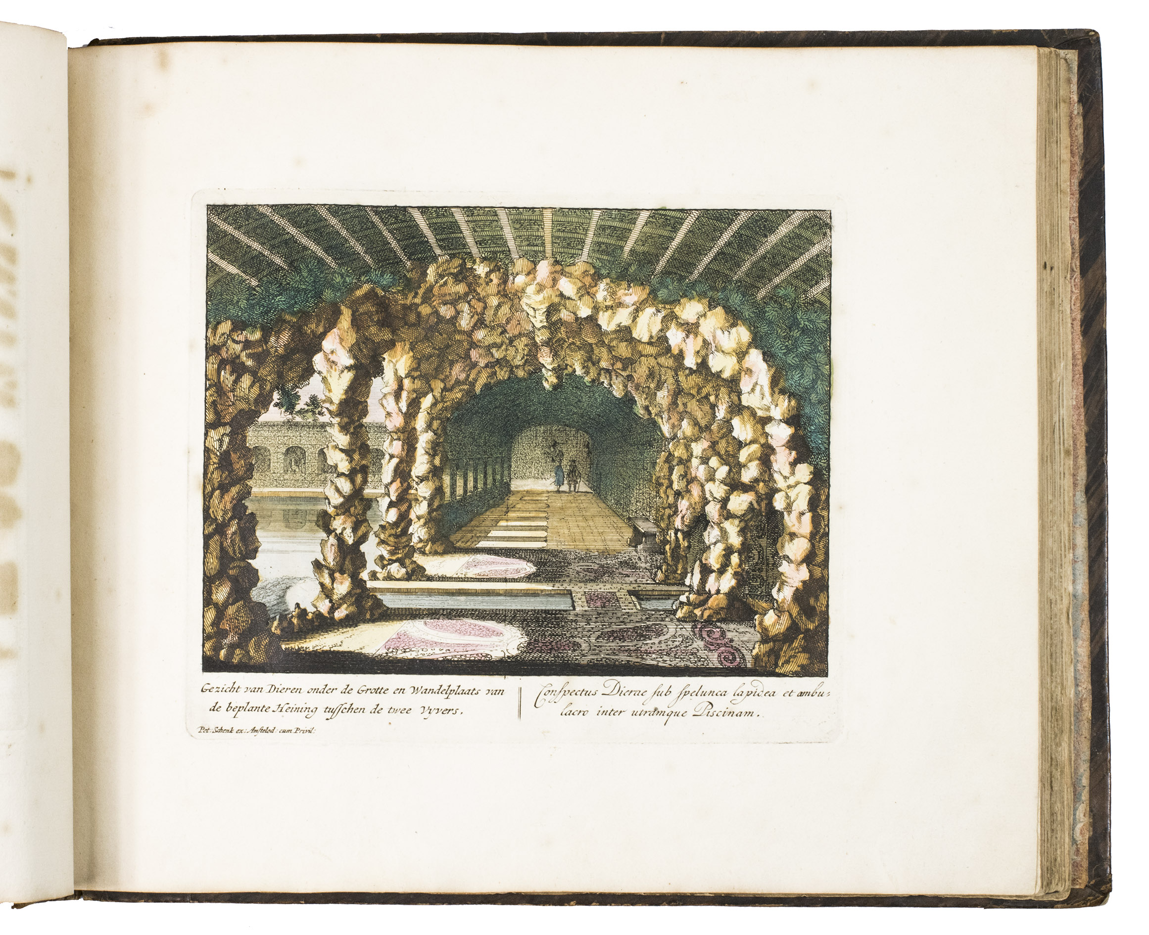 Magnificent large paper copy of series of views of some of the most sumptuous palaces and gardens of the 17th century. All the plates have been beautifully coloured by a contemporary hand. The work contains three different print series, depicting the most beloved houses and palaces of Stadholder/King William III (1650-1702) from various angles, as well as the gardens, fountains, and statuary. The 3 series were originally issued separately. The first 2, together with 4 other series, were reissued in the first part of Schenk's Paradisus oculorum in 1702, just before William of Orange passed away. However, most parts survive separately, and are now relatively rare.