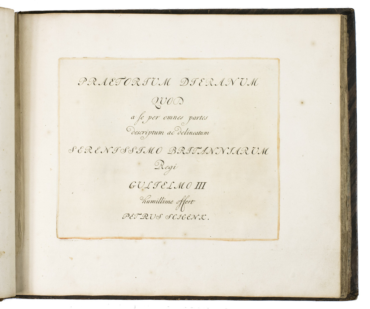 (2) SCHENK, Pieter. Praetorium dieranum quod a se per omnes partes descriptum ac delineatum Serenissimo Britanniarum Regi Gulielmo III humillime offert Petrus Schenk.