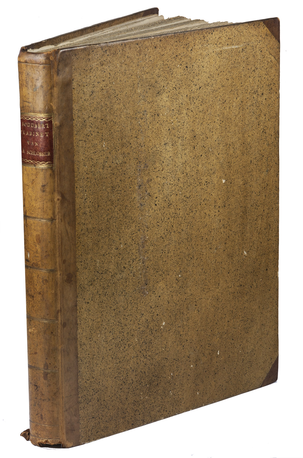 First editions of five letters elaborately describing five exotic animals. They were clearly intended to form a set, since the half-titles are numbered and the format and layout match. With 8 striking engraved folding plates, including 7 beautifully coloured by hand. The first letter is written by the Dutch physician and naturalist Johan Albert Schlosser, the other four are by Petrus Boddaert, describing animals from Schlossers collection. After his death in 1769 his large zoological cabinet apparently came into the hands of Boddaert. All letters are bilingual, with text in Dutch and Latin on facing pages.