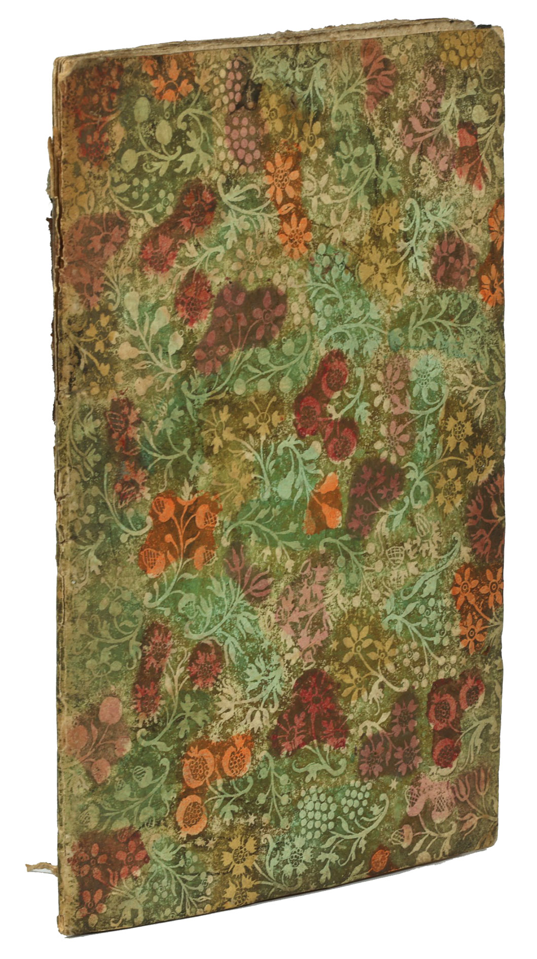 [Madras, ca. 1730]. Small 8vo (11.5 x ca. 16 cm). Contemporary (Dutch?) floral "brocade paper" wrapper, with the Latin title on the verso of the upper wrapper. 6 ll.
