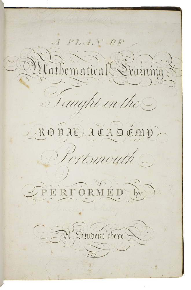 [engraved title-page:] A plan of mathematical learning taught in the Royal Academy Portsmouth performed by [in pencil: Charles Sotheby] a student there.