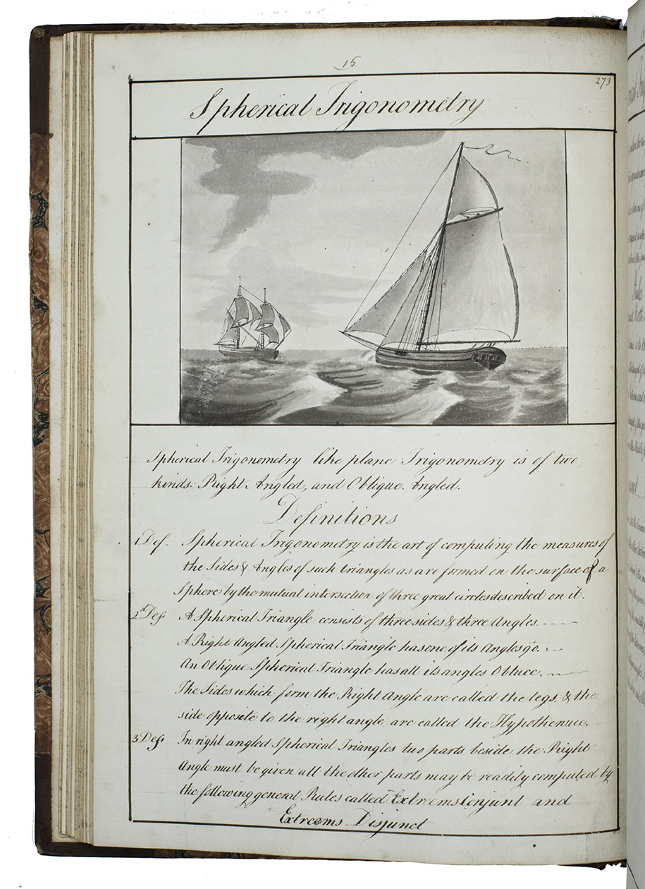 The present exercise book not only shows Sotheby's high level of skill and knowledge at an early age, it also provides a very clear and detailed picture of the training of British naval officers in the 1790s, as Napoleon began making his earliest plans to invade England.