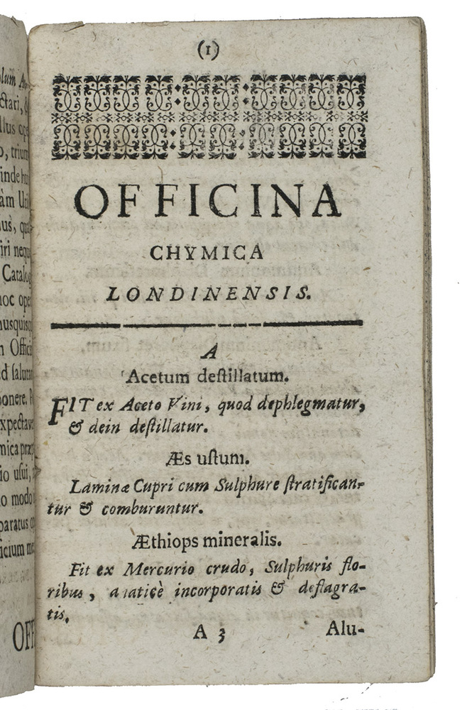 Officina chymica Londinensis, sive exacta notitia medicamentorum spagyticorum, quae apud aulam Societatis Pharmaceuticae Londin. Praeparantur, & venalia prostant ... Editio tertia juxta exemplar Londini.