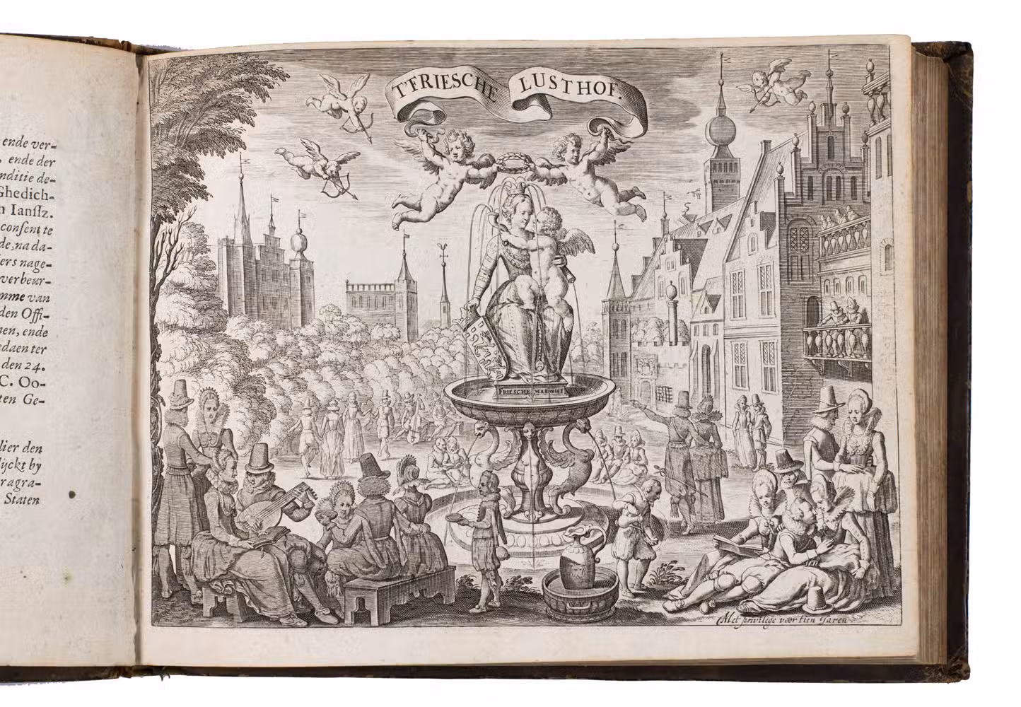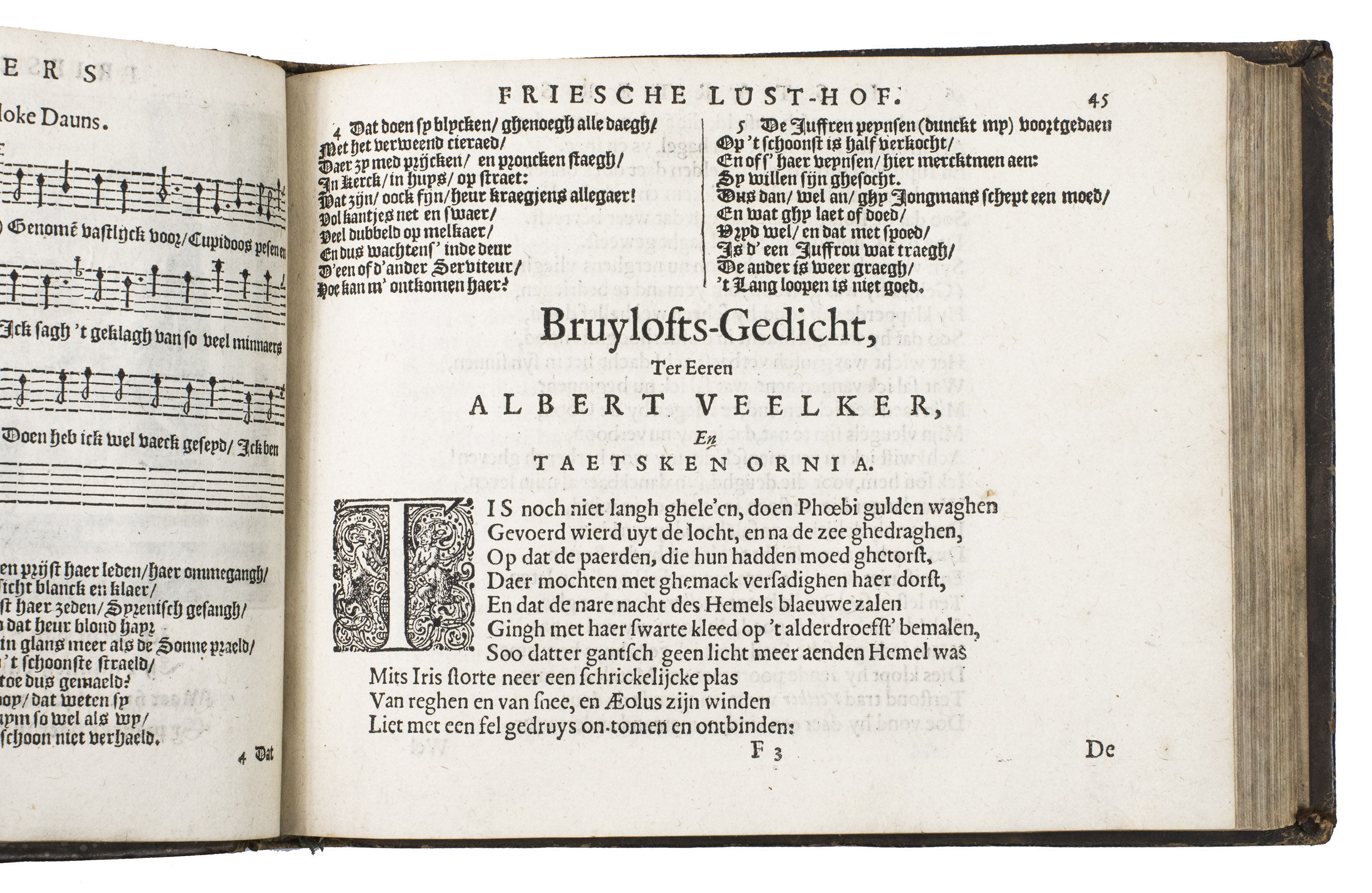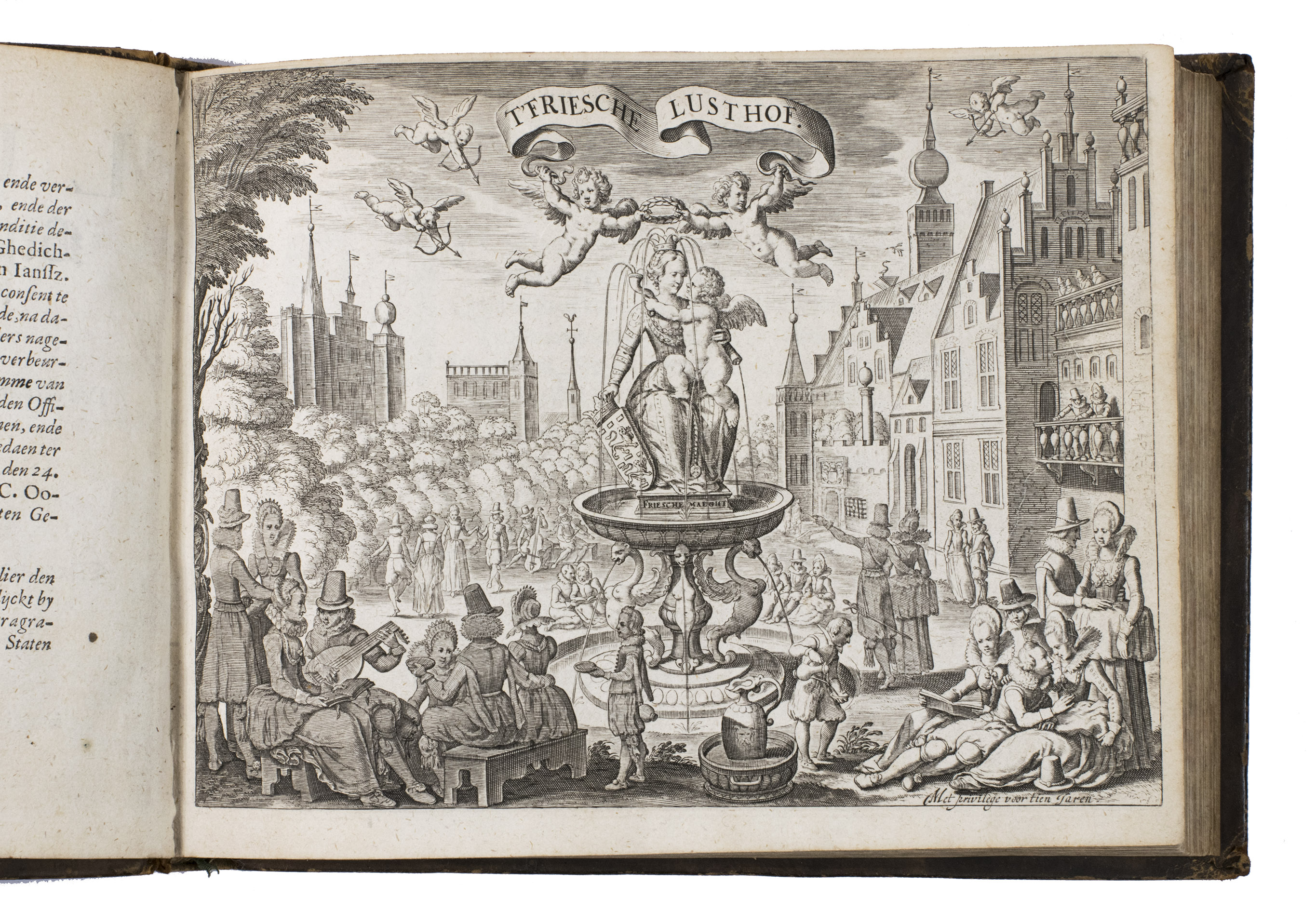 Friesche Lust-hof, beplant met verscheyden stichtelijcke minne-liedekens, gedichten, ende boertighe kluchten. Den derden druck op nieuws vermeerdert ende verbetert ... Midtsgaders oock noch verrijckt ende verçierd met schoone kopere figuren; ende by alle onbekende wysen de noten, ofte musycke gevoeght.