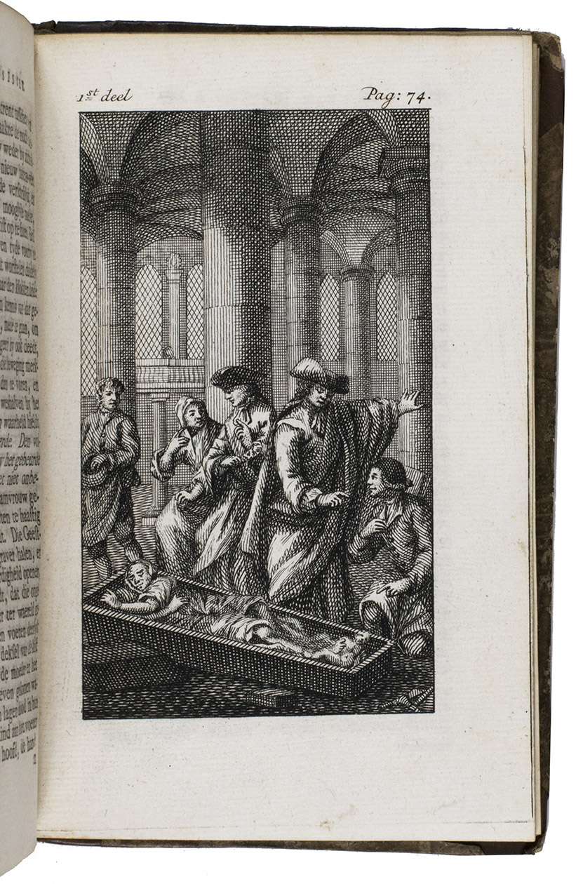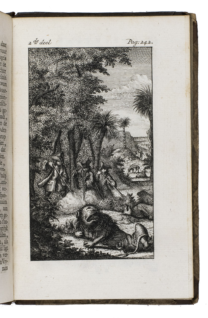 Amsterdam, S. van Esveldt 1755, 2 volumes. With a frontispiece by J. C. Philips and 7 full-page engraved plates. Contemporary gilt half-calf, dark brown moroccan letterpiece to spine. [12], 267, [1]; [4], 308 pp.
