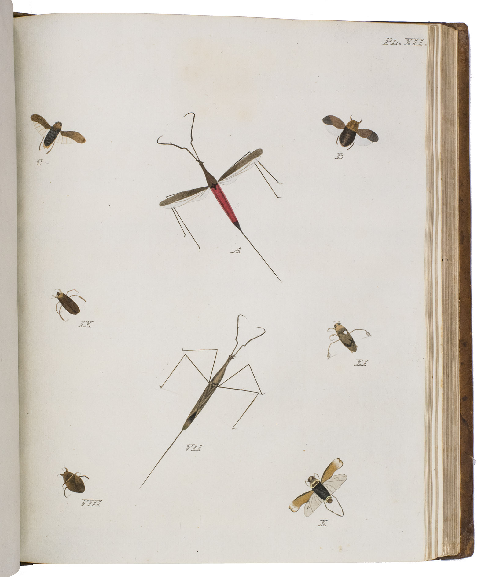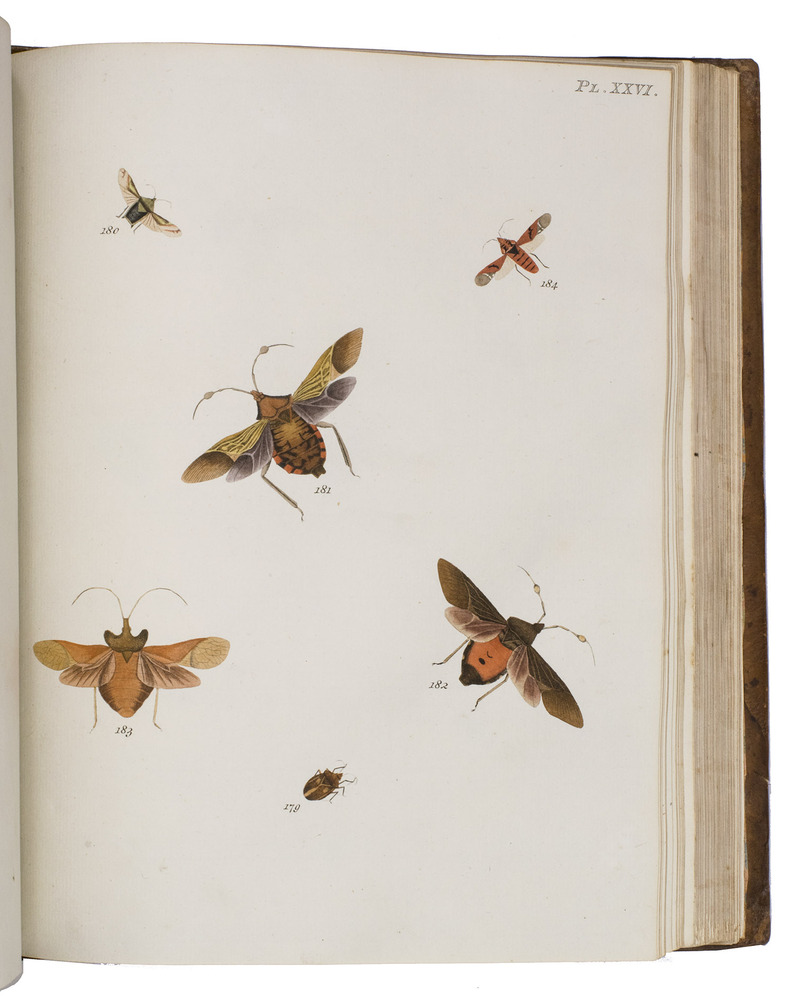 These 2 volumes were written by entomologist Casper Stoll (ca. 1725-1793/95) and were later followed by a work about grasshoppers. They were originally published in monthly installments. The present works are commonly bound together. In the present copy, they are preceded by the rare cancelled title-page, with the year 1780, and the general introduction. Stoll was the first entomologist to devote himself to Hemiptera and used Linnaeus' classification to categorise them. His work was lauded for its accuracy and beauty of colouring.